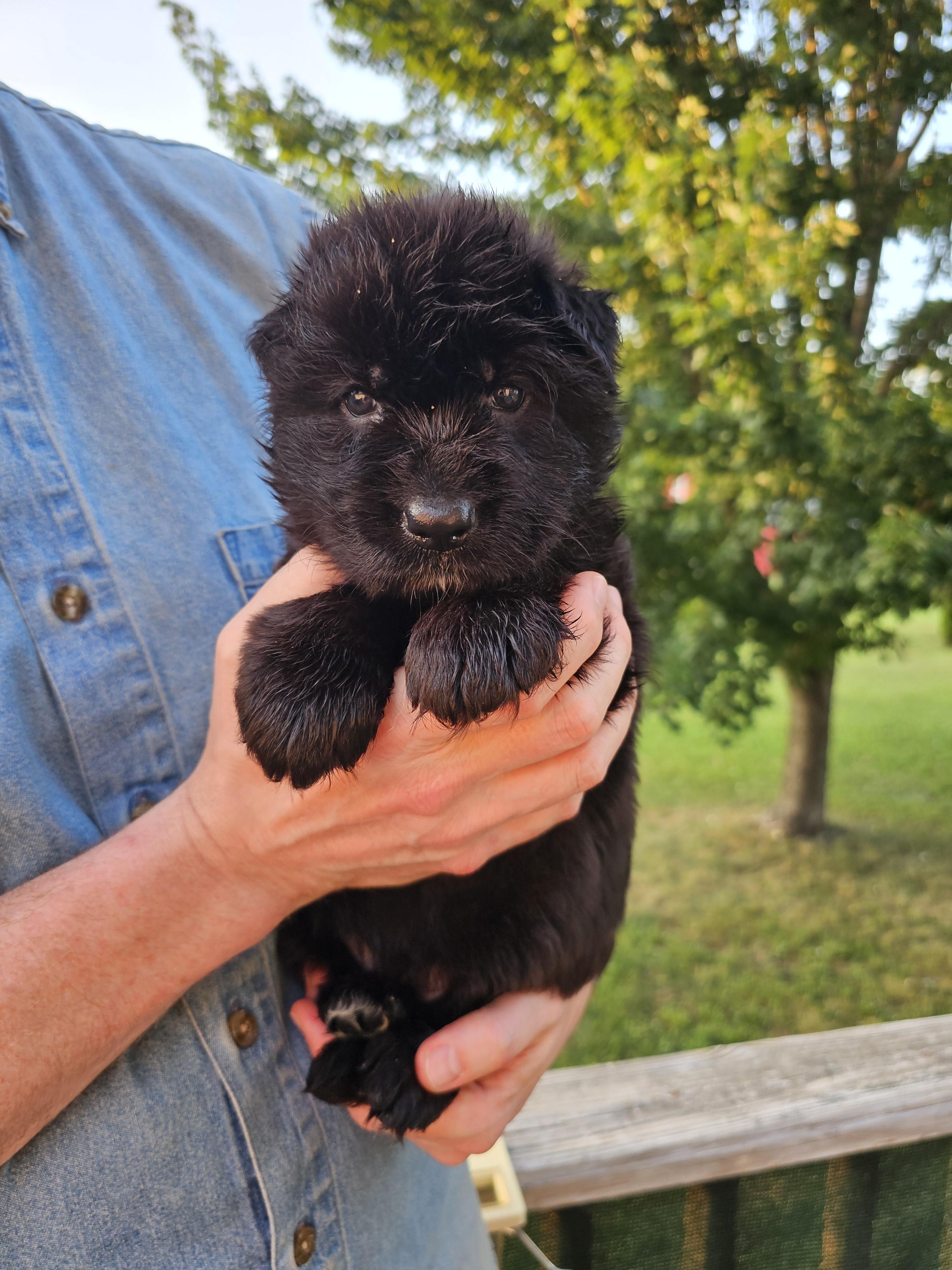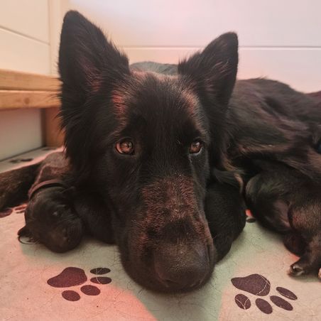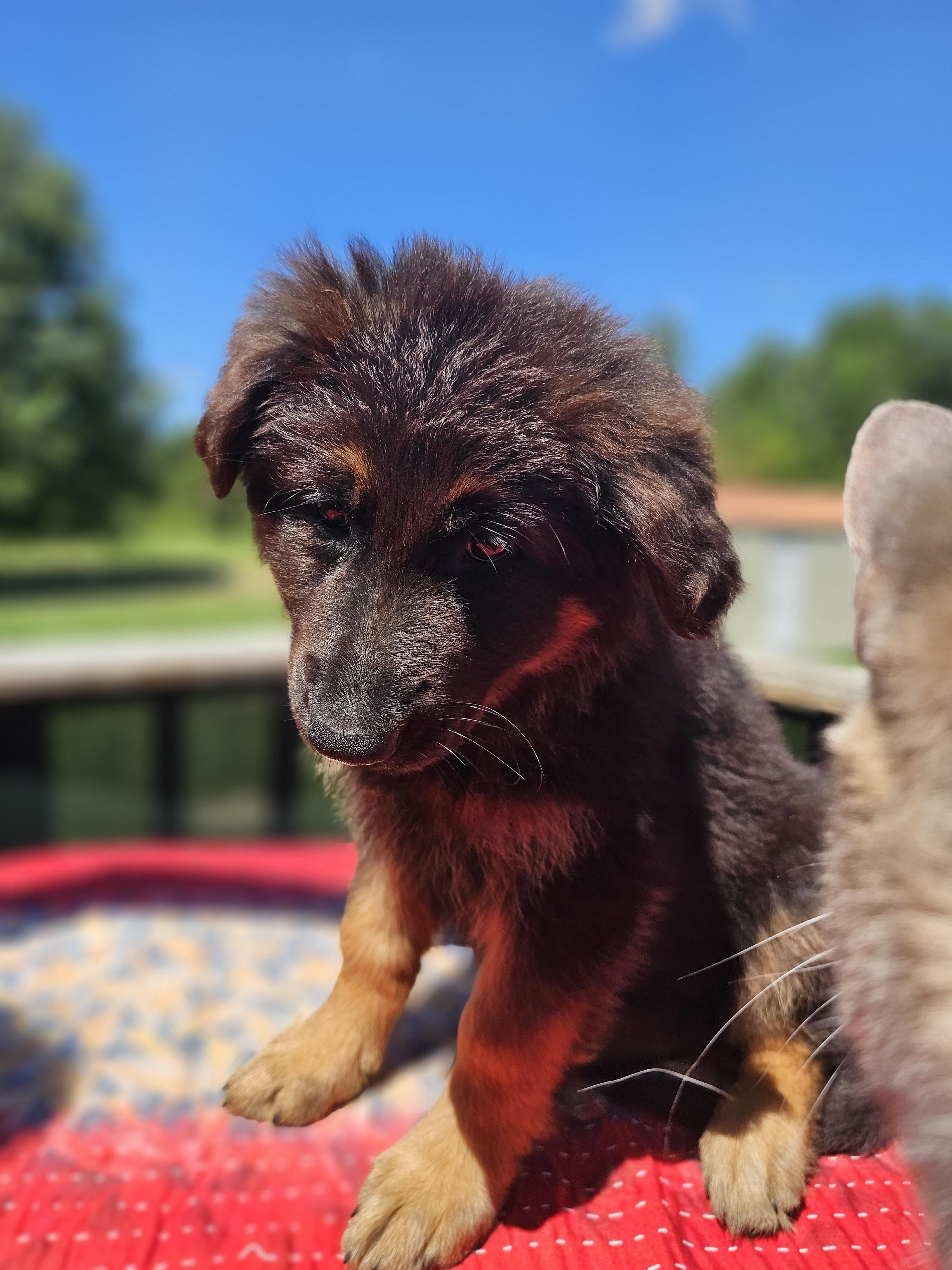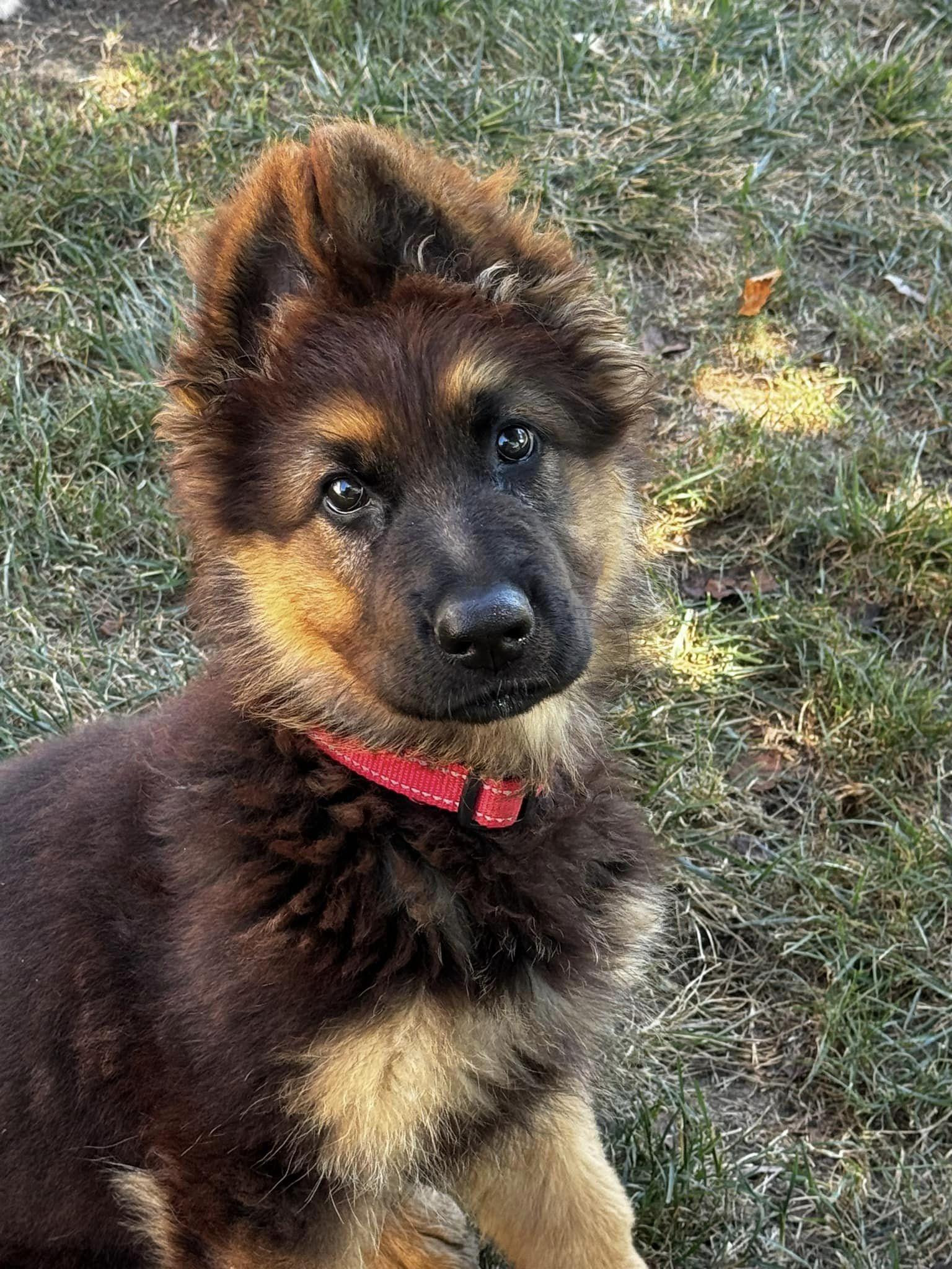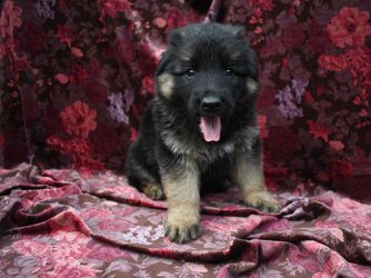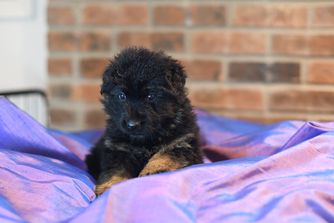 Aurora is a beautiful black and red longcoat. She is always willing to try new things and has been a delight to train. She loves to play fetch, take long walks or just to hang out with you. She is the epitome of the AKC GSD standard. Aurora has many titles in her pedigree and is currently working on her own titles. Aurora is embarked tested clear, dm clear with SV rated hips A normal, elbows normal.