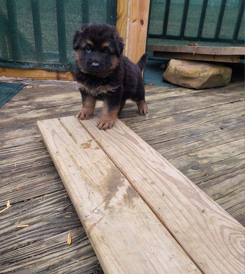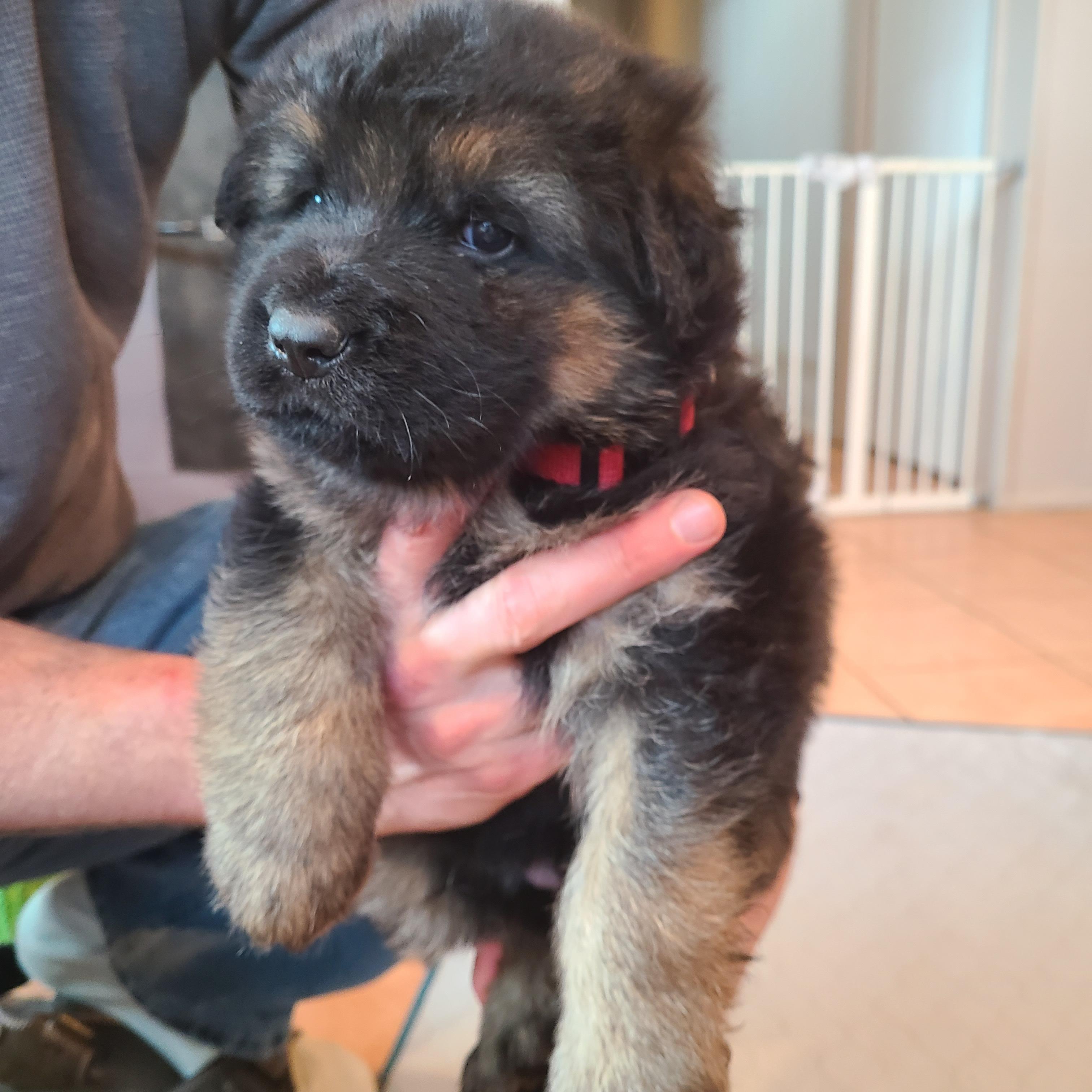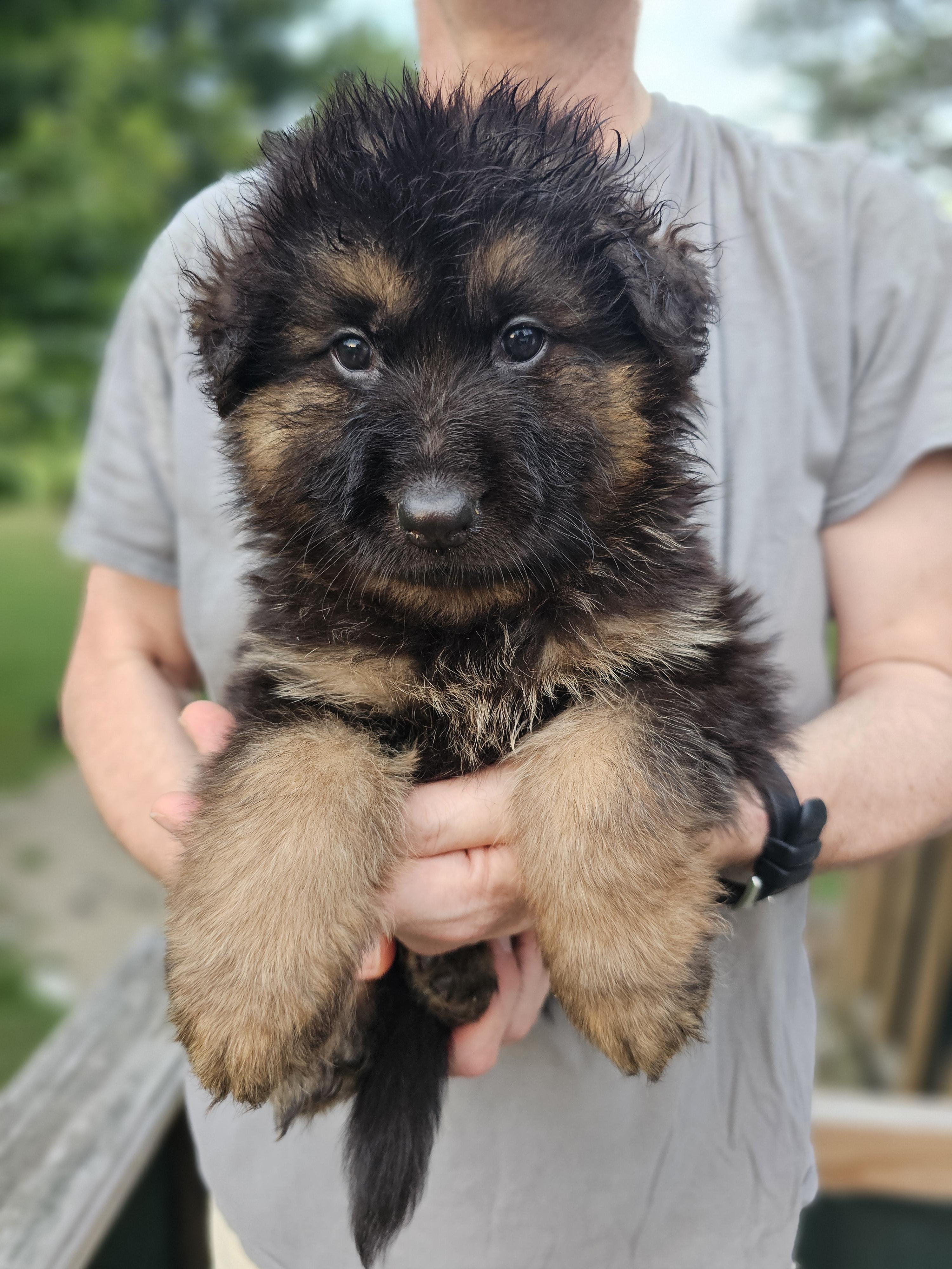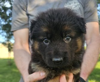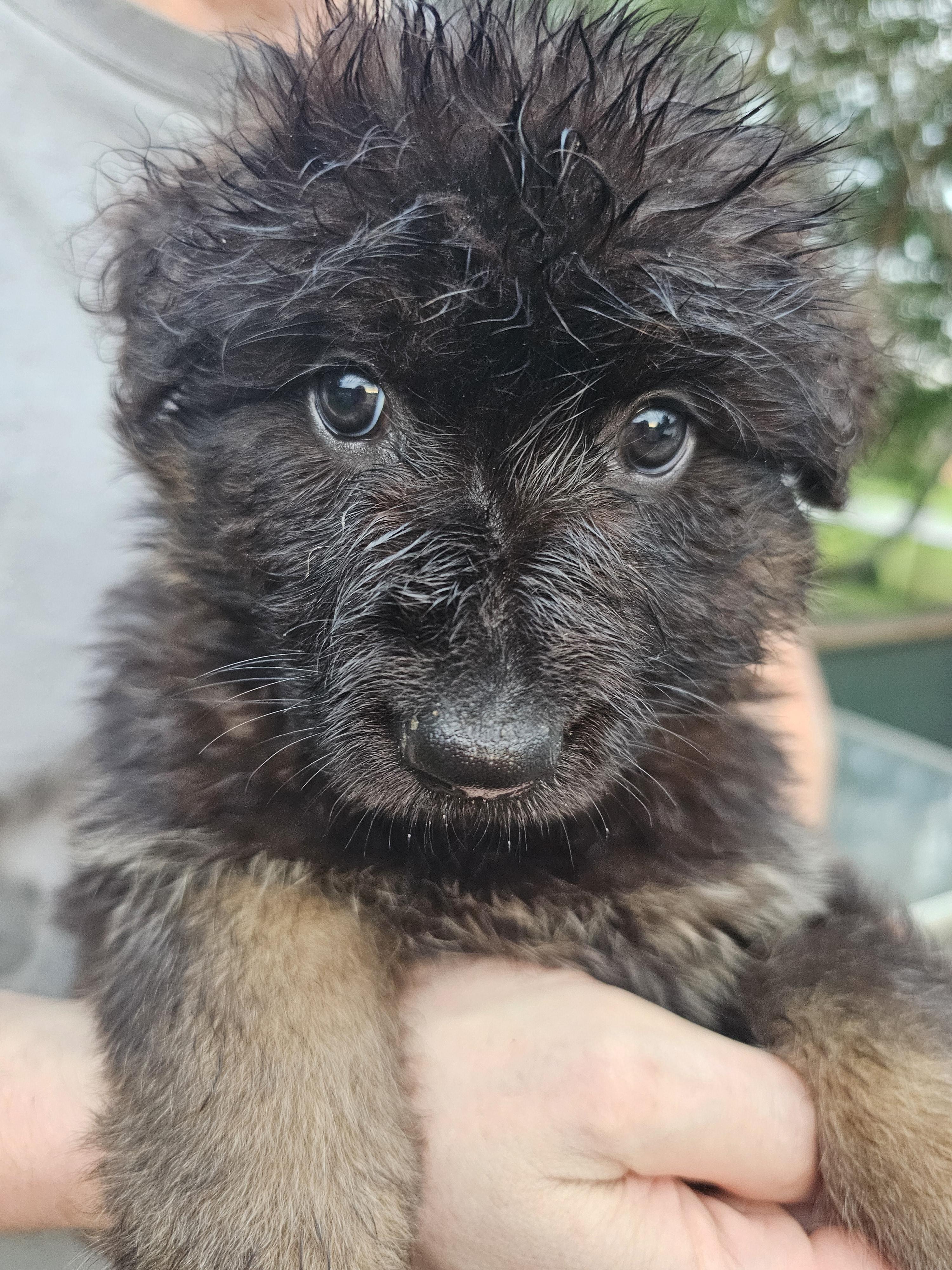 Aurora is a beautiful black and red longcoat. She is always willing to try new things and has been a delight to train. She loves to play fetch, take long walks or just to hang out with you. She is the epitome of the AKC GSD standard. Aurora has many titles in her pedigree and is currently working on her own titles. Aurora is embarked tested clear, dm clear with SV rated hips A normal, elbows normal.