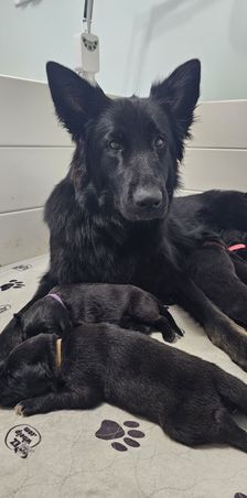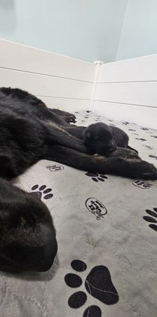 Cha-Cha's name fits her well. She just loves life. She is a longcoat solid black (although she shows some bleed through on her legs). Cha-Cha is extremely athletic and has received her first Fast Cat title. When she was running, she was rated in the top 100 GSDs in the nation. Cha-Cha is very smart girl and learns quick. Cha-Cha is fine boned and of Serbian descent.