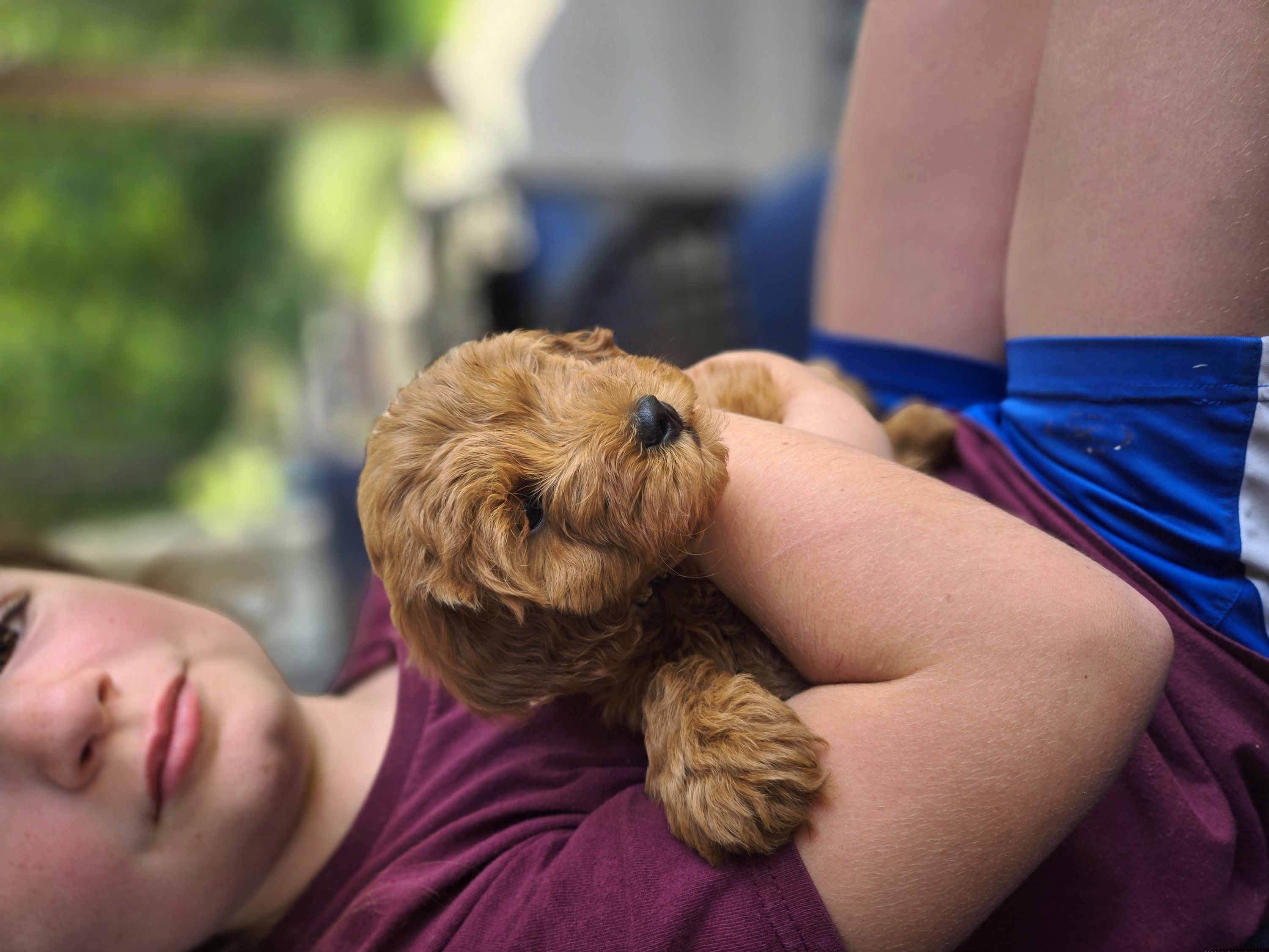I (Andee) grew up with Goldendoodles. My mom bred and raised goldendoodles for 19+ years and was always involved with raising them. I fell in love with their personalities, playfulness, intelligence, and of course how adorable they are. I wanted to continue to provide families with wonderful dogs for their families.
