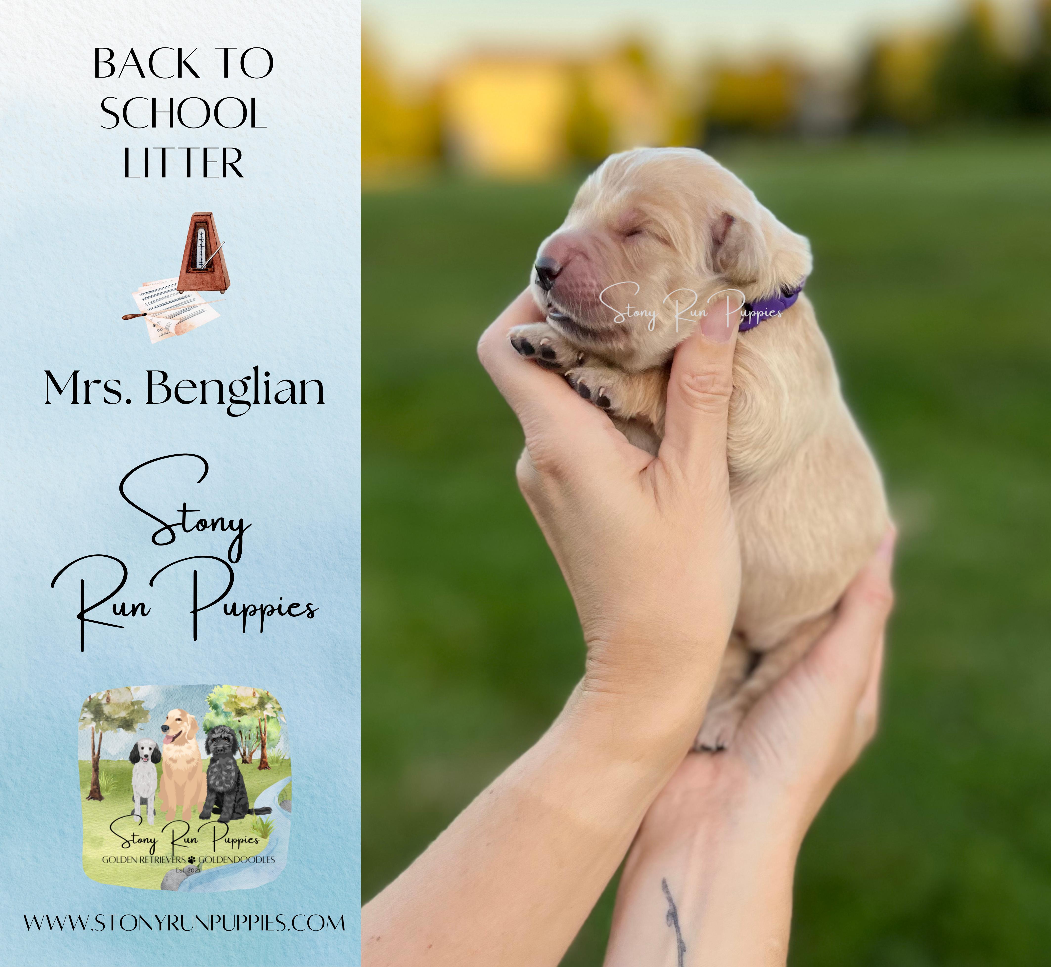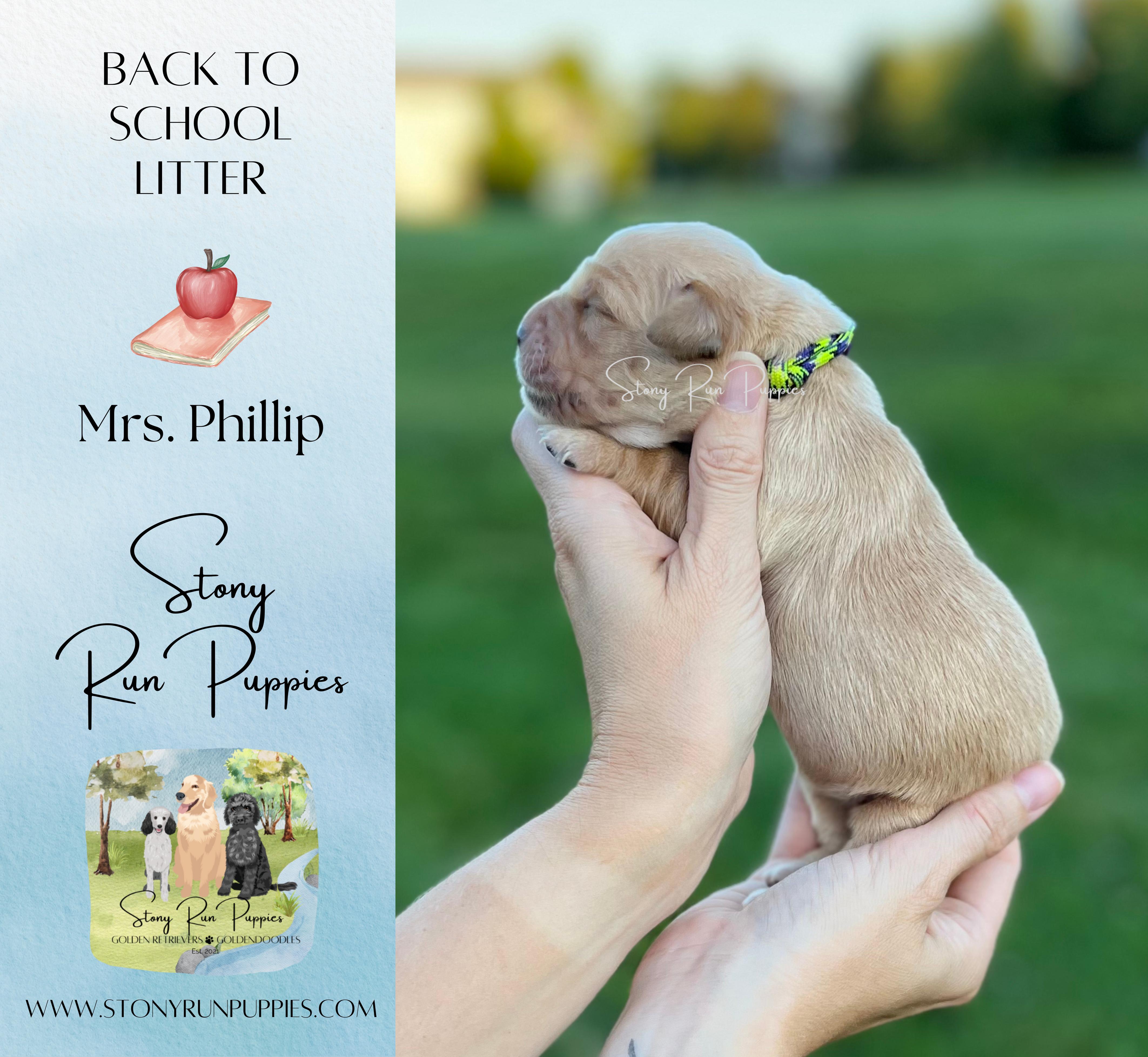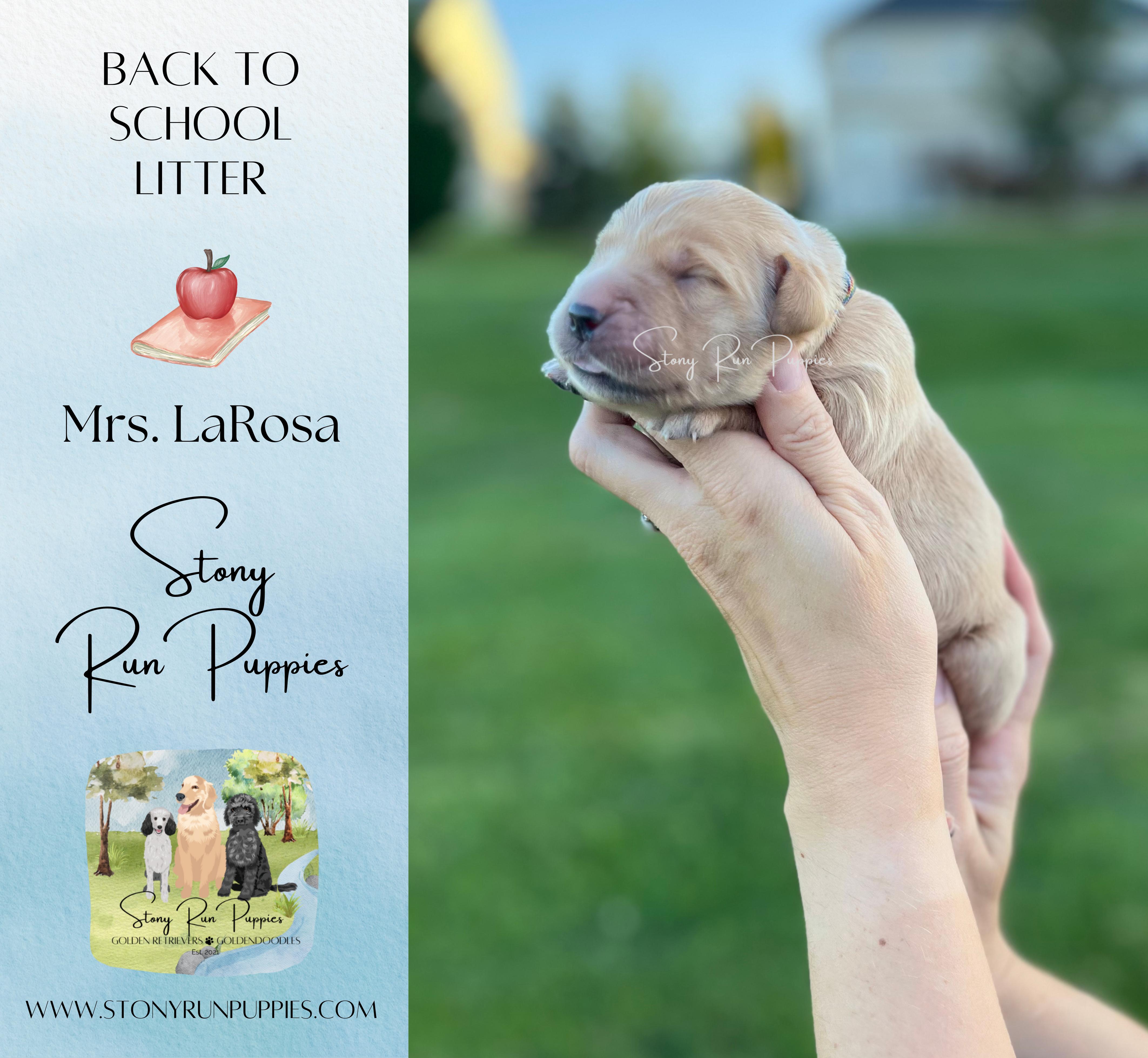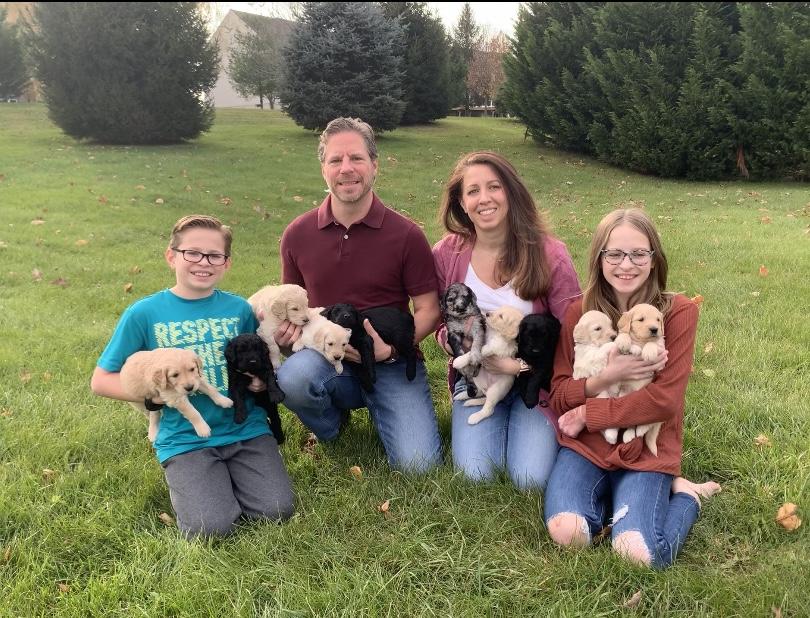 After my sister started a breeding program, we welcomed our founder mama, Leia, a beautiful, spunky and devoted Golden Retriever into our home. As a science teacher, I found breeding amazing and was excited to try it on our own. After our first litter and lots of research, I'm happy to say that we loved it and will continue breeding. We now breed both Golden Retrievers and Goldendoodles.
