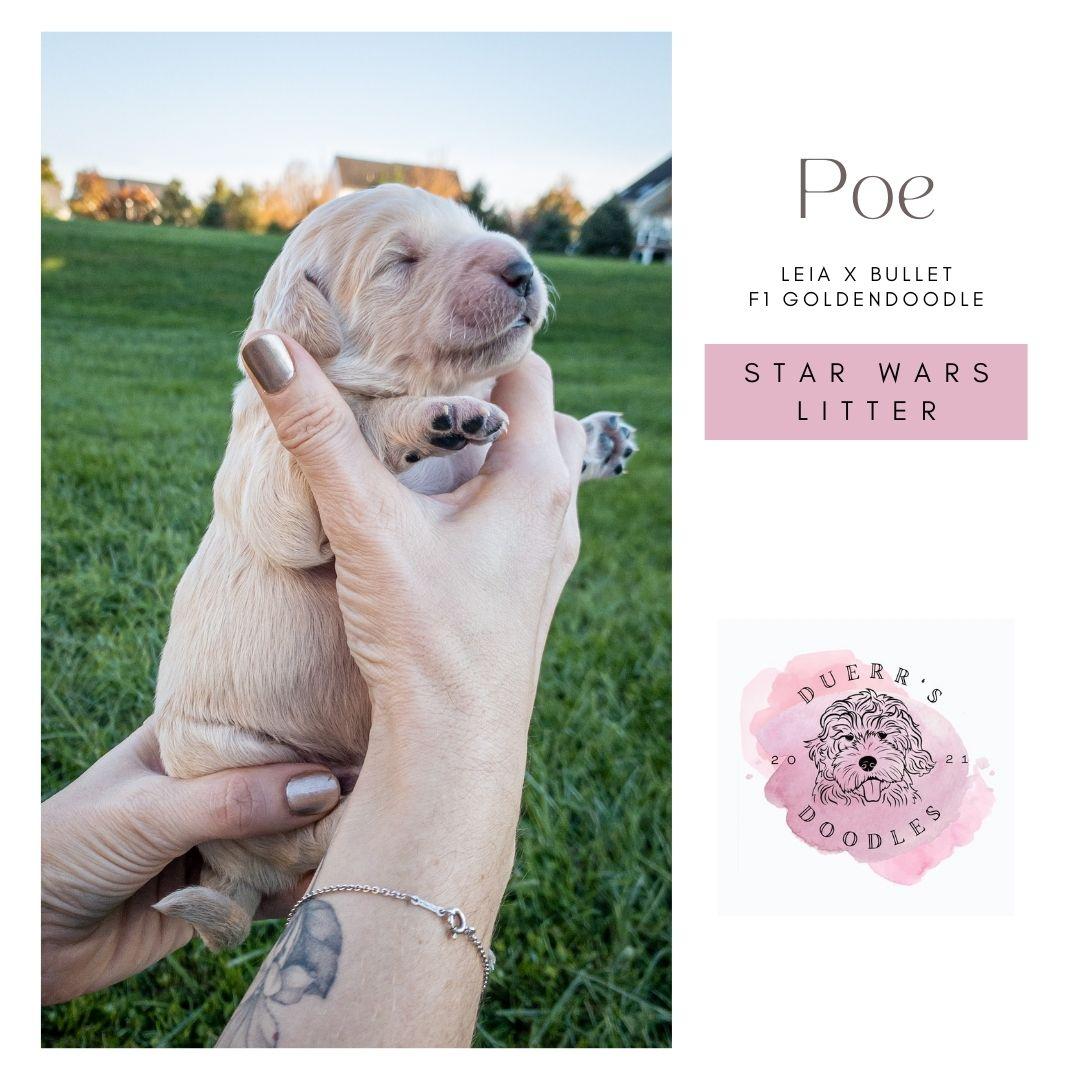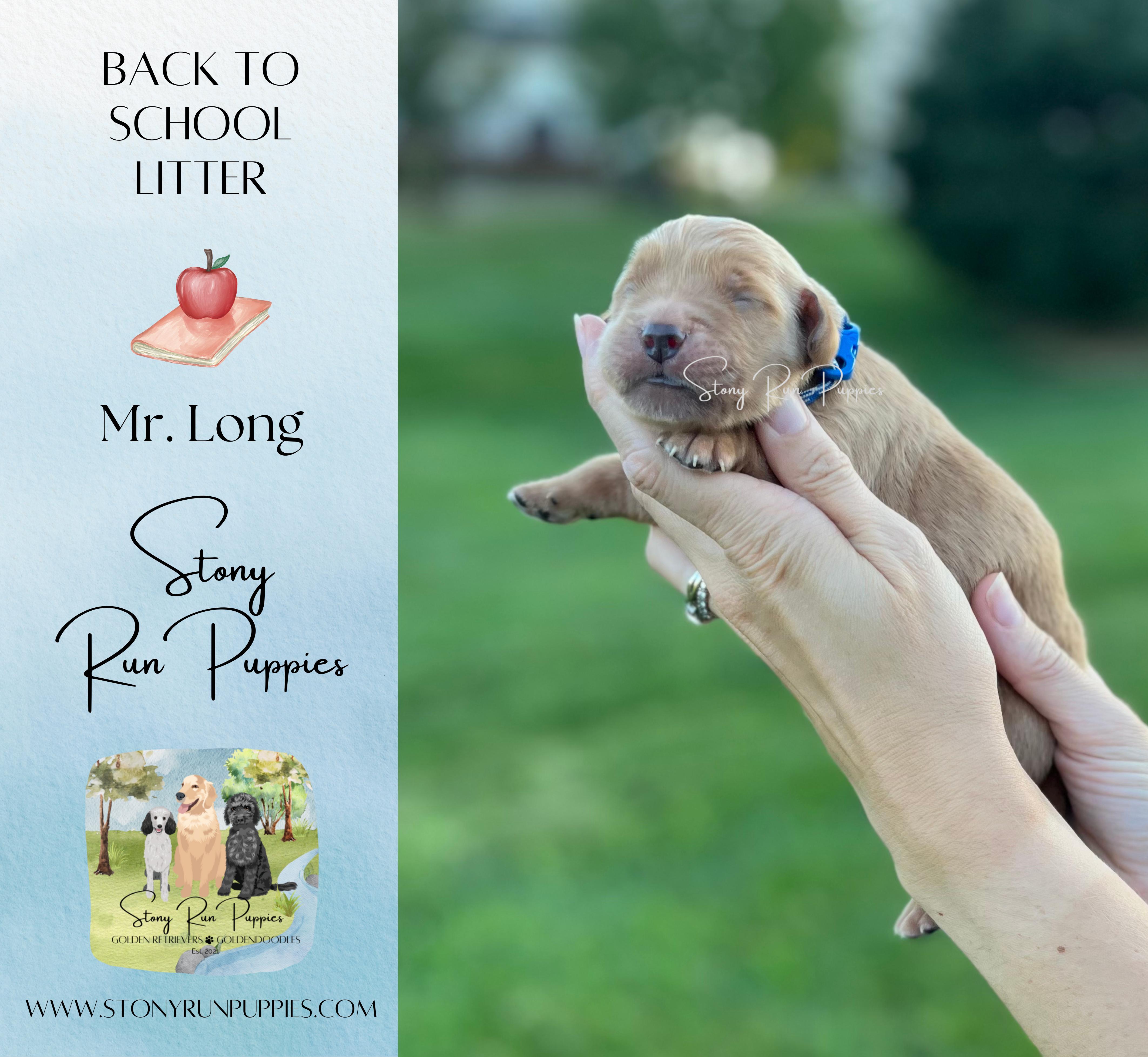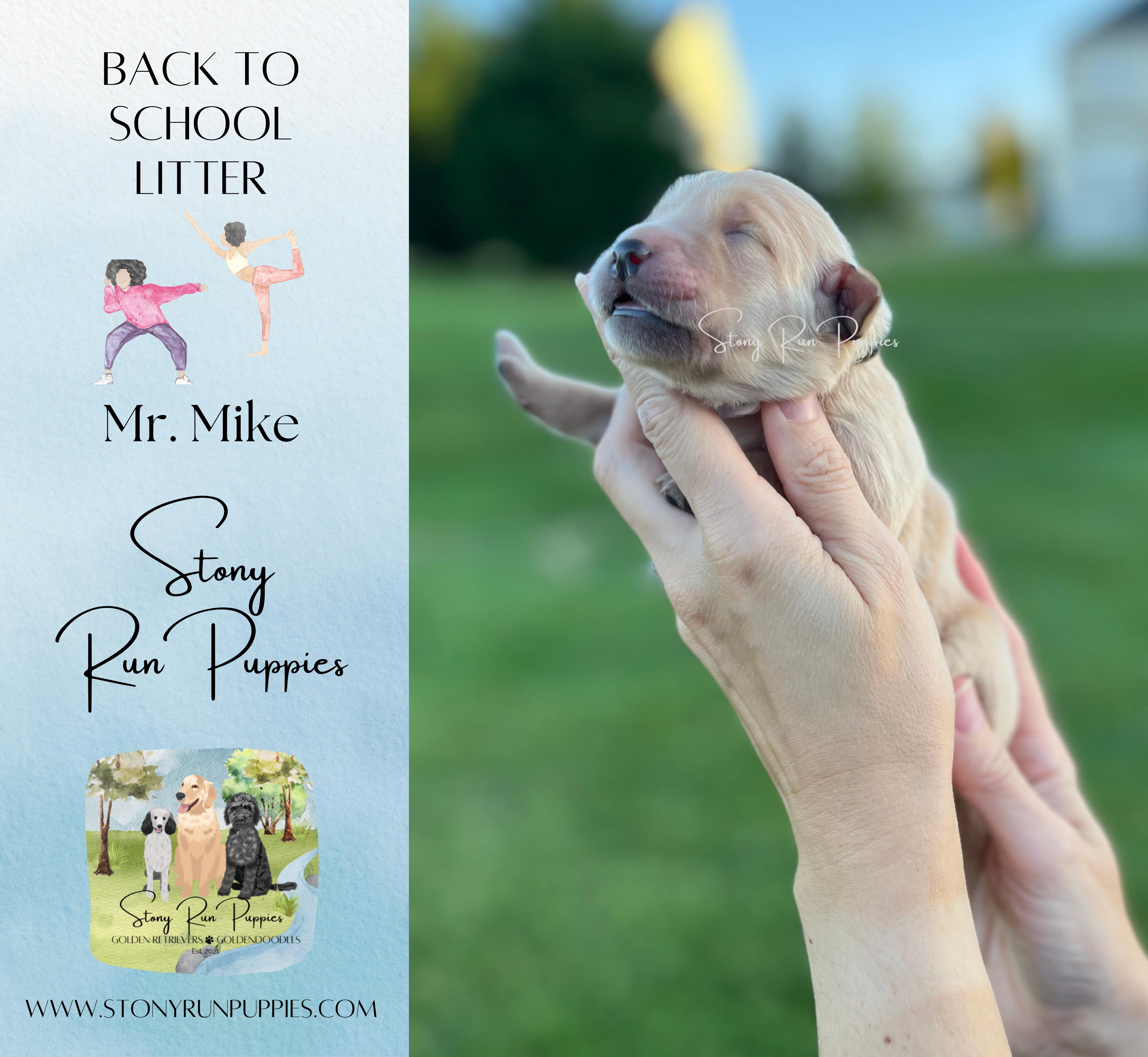 Our Golden Retriever puppies include dark golden, golden, and light golden. Goldendoodle puppies include cream, black, and merle. Colors will vary depending on the parent dogs.