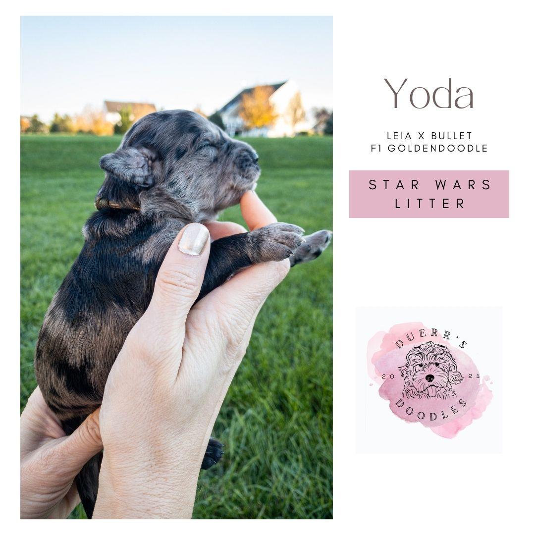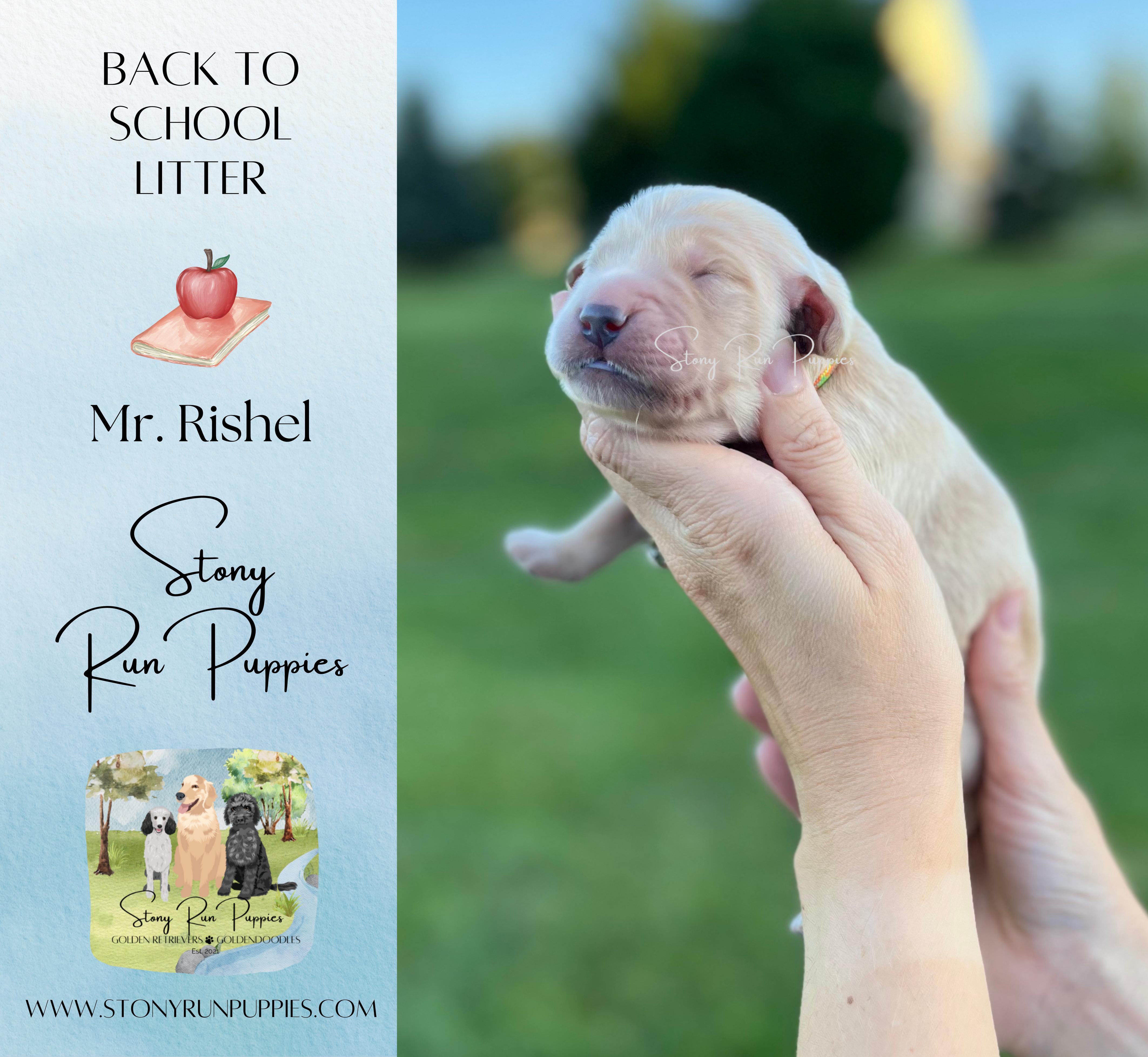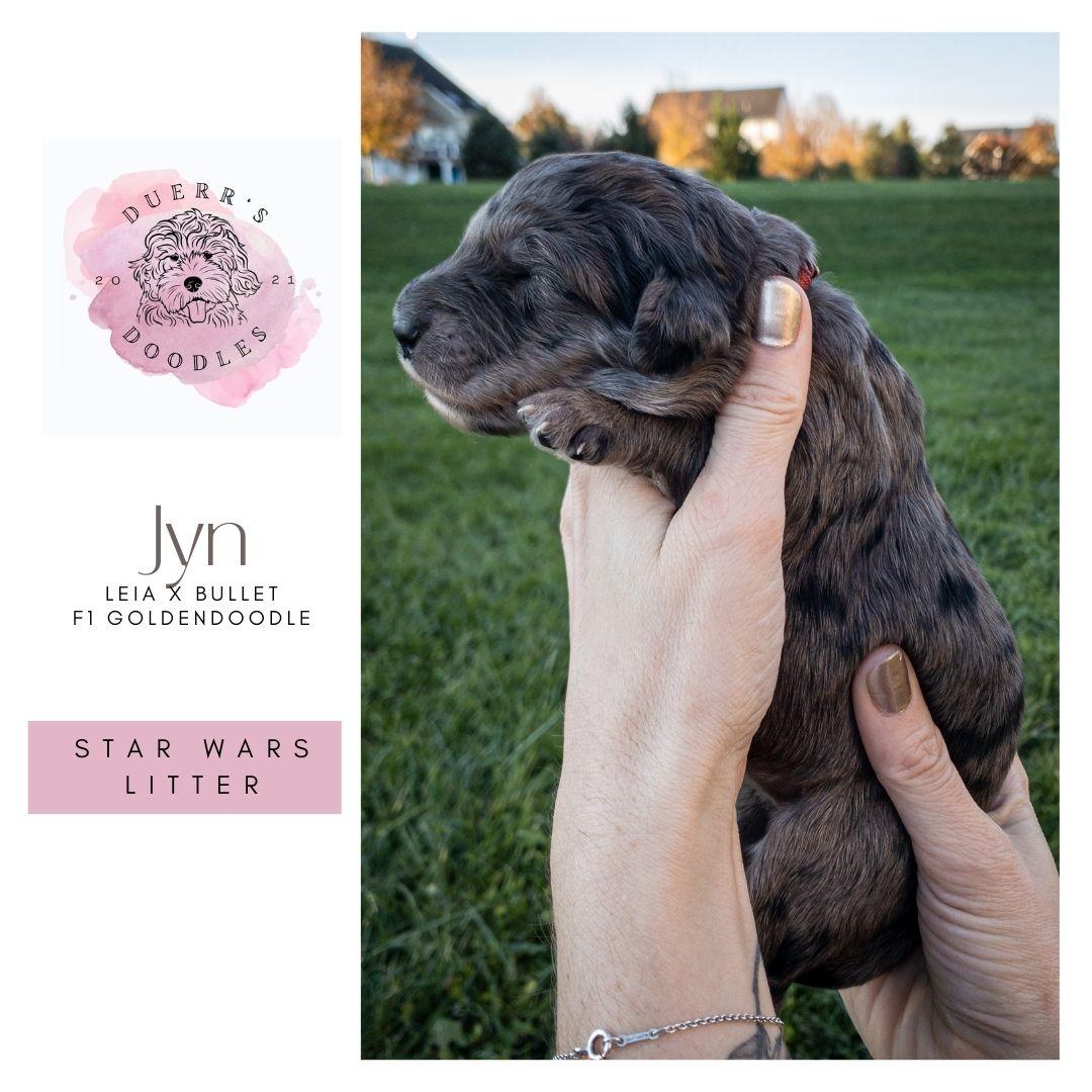 Our Golden Retriever puppies include dark golden, golden, and light golden. Goldendoodle puppies include cream, black, and merle. Colors will vary depending on the parent dogs.