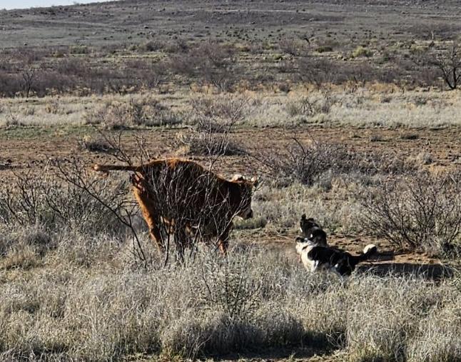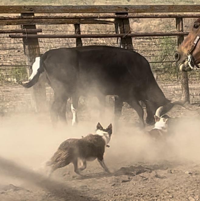 Vegas has high drive and loves to work cows! She is well trained, smart, and obedient. She loves the family as well. She has unusual white markings on her face, and her pups tend to carry that gene as well.