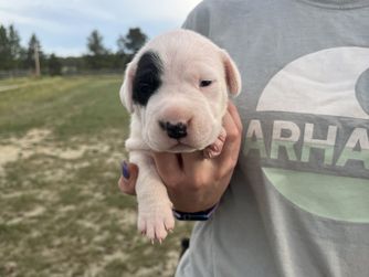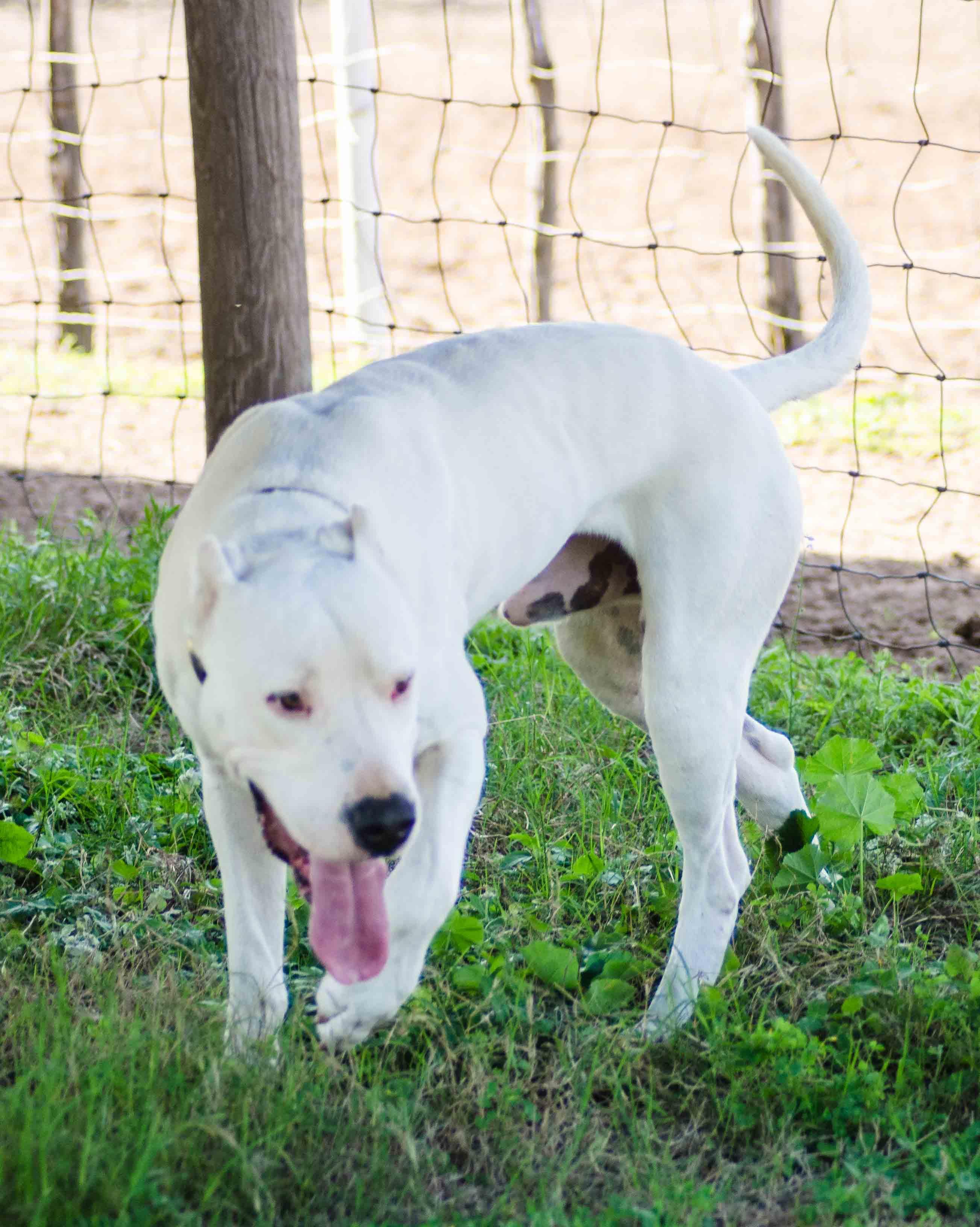 Chico is a male Dogo Argentino. Carefully selected as a great representative of his breed, Rebecca decided to make him part of their program. Rebecca has passed Good Dog’s screening process, which involved a review of their breeding practices, environment, and the mental and physical health of their dogs.