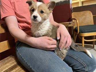 Pembroke Welsh Corgi puppies include fawn, red, sable, black and tan, white and red, white and black, and blue. Colors will vary depending on the parent dogs.