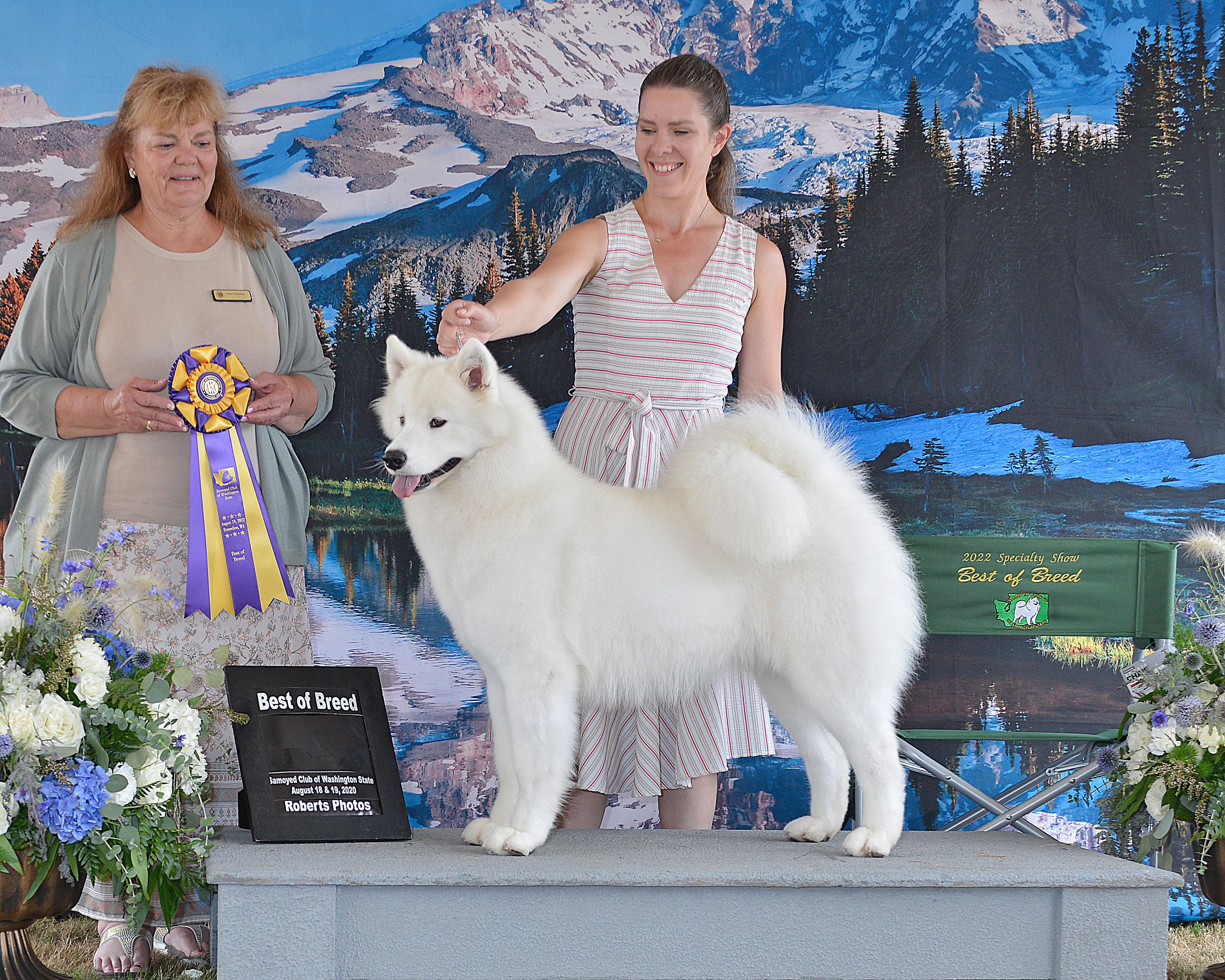 I'm Karen R., the breeder behind StormCloud Samoyeds located in Battle Ground, WA. My husband Mike and I own and breed StormCloud Samoyeds. We have bred many champions and better yet, healthy and happy puppies. We display the utmost care for our dogs, take part in occasional competitions, and ensure they live the fullest, happiest lives possible.