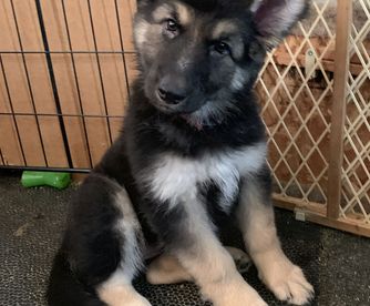 Our puppies include black, black and tan, black and red, and blue. Colors will vary depending on the parent dogs.