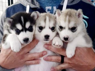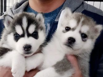 Our puppies include red and white, gray and white, and black and white. Colors will vary depending on the parent dogs.