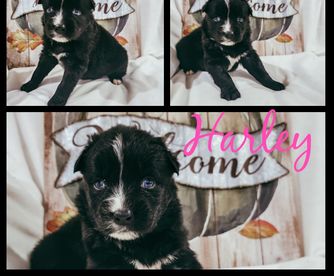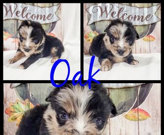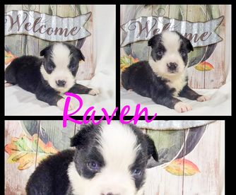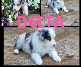 Our puppies include black and blue merle. Colors will vary depending on the parent dogs.