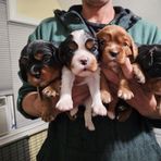 Our puppies include blenheim, ruby, black and tan, tri-color, and chocolate. Colors will vary depending on the parent dogs.
