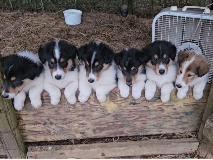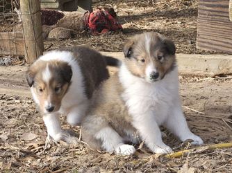 Our puppies include sable and white and black white and tan. Colors will vary depending on the parent dogs.