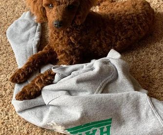 Growing up I lived in the same yard as my grandparents, whom raised Border Collies on our sheep and cattle ranch. I grew up during breeding and helping my grandparents raise puppies. I specifically recall wishing that I was able to have a "forever puppy", one that I could pack around and snuggle. With the support of my husband and my prior experience I began breeding Toy Poodles.