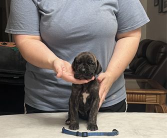 Our puppies include brindle and fawn. Colors will vary depending on the parent dogs.