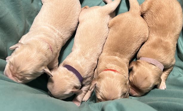 Puppy prices include a $500 non-refundable deposit and between $2,000 - $2,800 final payment, before taxes & fees.