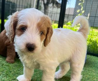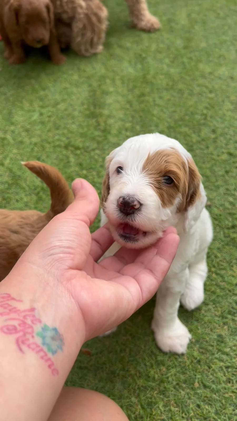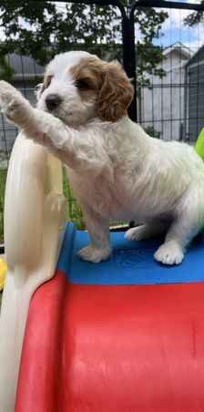 Our puppies include cream, apricot, red, and parti. Colors will vary depending on the parent dogs.