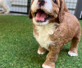 Our puppies include miniature and medium sizes. Sizes will vary depending on the parent dogs.