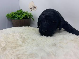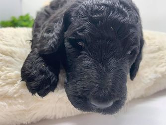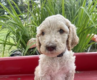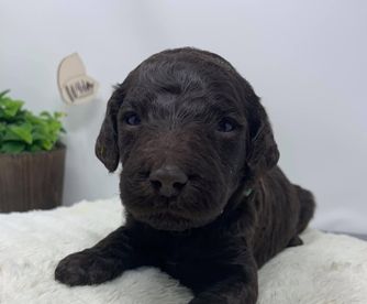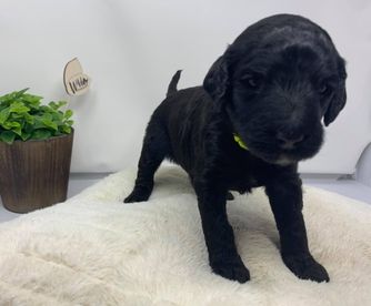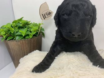 Our Goldendoodle puppies include cream, chocolate, and black. Colors will vary depending on the parent dogs.