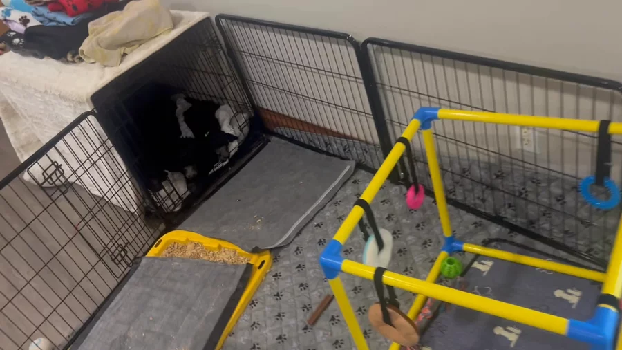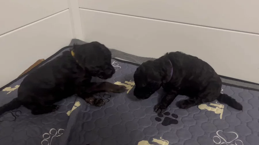 The pups are starting to play with each other! 3 weeks old today. They had their toenails dremmeled and their faces, feet and sanitary clipped today.