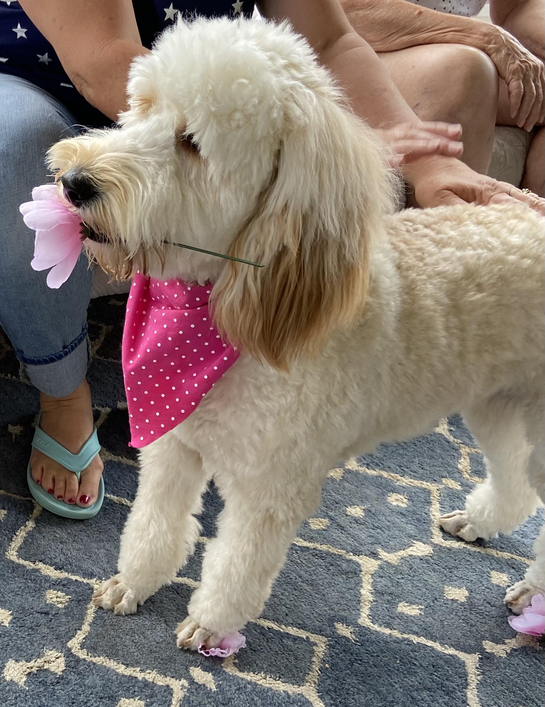 Elle Mae is a female Goldendoodle. Carefully selected as a great representative of her breed, SHERI decided to make her part of their program. SHERI has passed Good Dog’s screening process, which involved a review of their breeding practices, environment, and the mental and physical health of their dogs.
