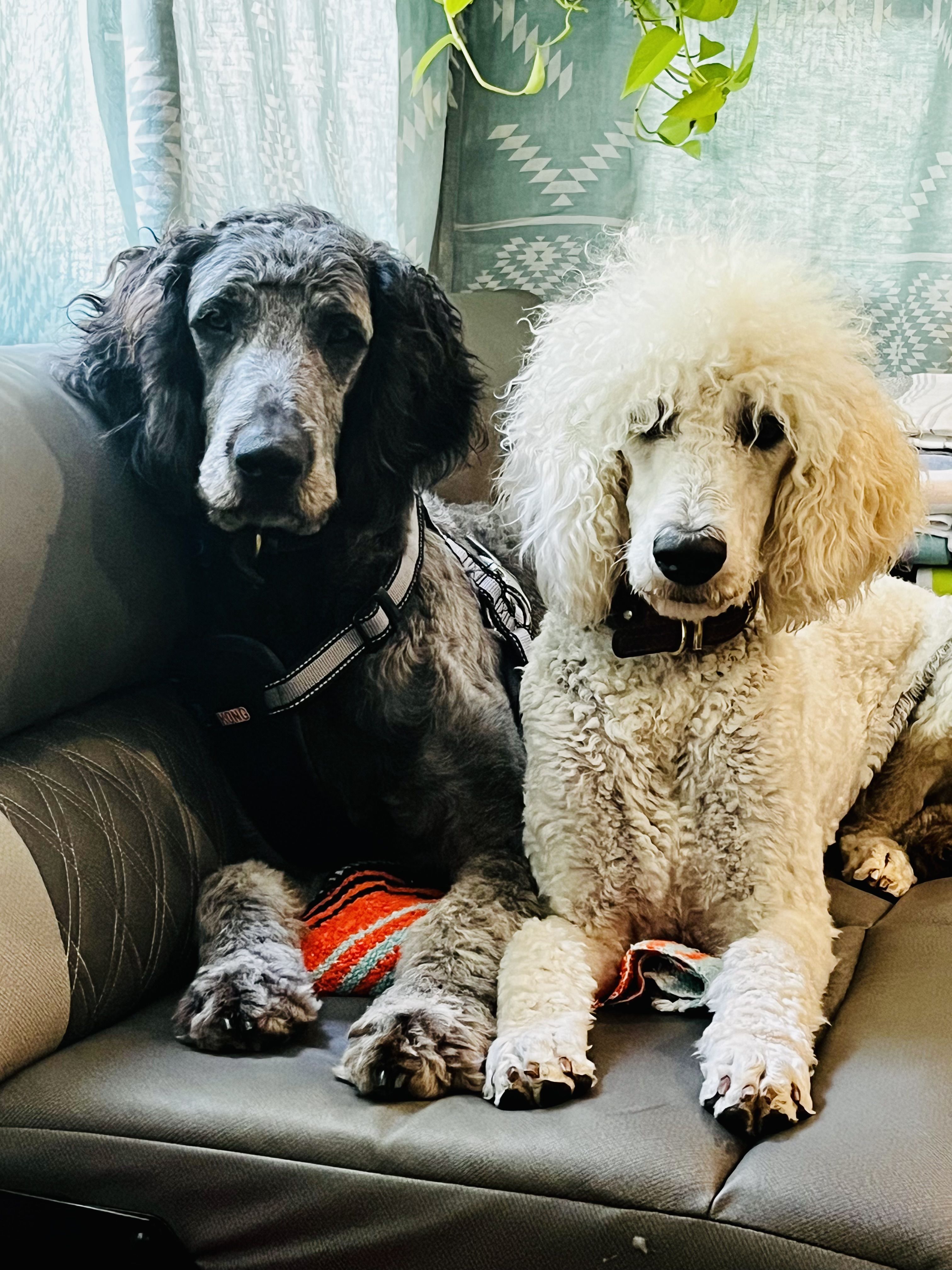 I got Sugar Bear two years ago, she is a standard poodle. We were interested in breeding her with a purebred standard poodle male, but then found Rip our sweet, intelligent, loving, black goldendoodle boy. We fell in love even more with the hybrid breed's personailty, and thought, "Sugar and Rip would make wonderful puppies together." They totally do make great puppies.