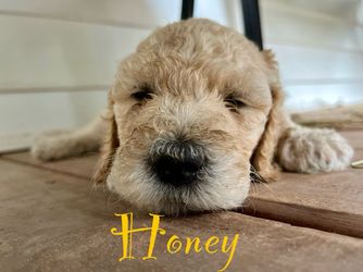 I'm Breanna D., the breeder behind Sugar Doodles located in Fayetteville, NC. We offer low shed, sweet, soft, Goldendoodle pups in a variety of colors. Our dogs are bred for health and temperament. Mama Sugar Bear is sweet, patient, calm, and loving. She is wonderful with children. Daddy Rip is gentle with children, playful, fetches, swims, and loving to his people.