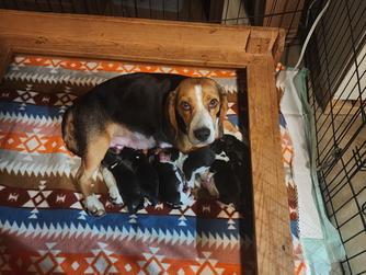 I'm Amanda P., the breeder behind Sugar Hill Hounds located in Brockway, PA. My name is Amanda Palmer, Mandy for short. My mother, Jody Lindemuth and I have been breeding, hunting, and showing our Beagles since the early 2000s. My mother is more of a silent partner nowadays, but she’s the reason I’m in the breed! Today my husband, Kurtis, helps with much of the work!