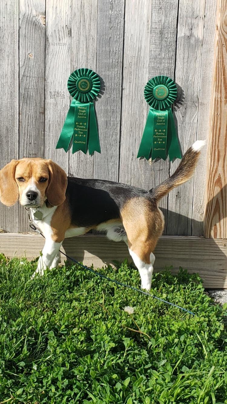 Peak is my heart and soul! She is a fabulous dual purpose boy! He's sweet, good on rabbits, has her Hunting Beagle Advanced title, & hopefully soon a CH show dog!