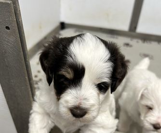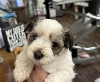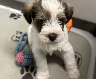 Mega coat mini Schaunzer puppies, cream with parti and brown colors