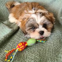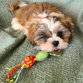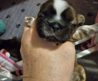 Sugar Paws heavenly Shih Tzu's was fantastic to work with. Magorie was so great about keeping me up to date with Spanky's progress and sent him home with a great starter package! Spanky aced his first vet checkup and has been thriving from day one. He has a wonderful happy personality and has quickly become one of the family. Today is his birthday- he is 12 weeks old!!