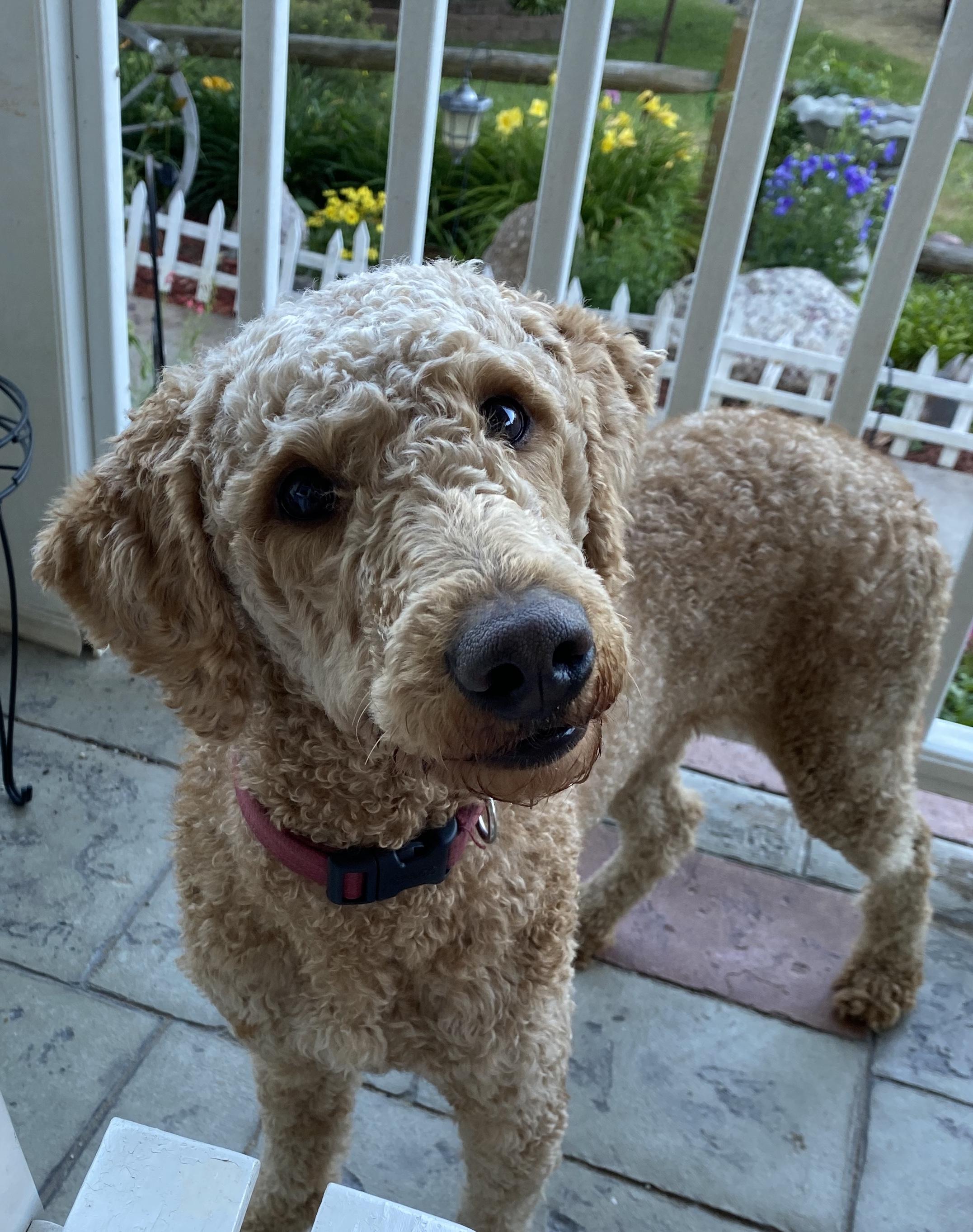 Pebbles is a female Goldendoodle over 7 years old. Carefully selected as a great representative of her breed, Bethany decided to make her part of their program. Bethany has passed Good Dog’s screening process, which involved a review of their breeding practices, environment, and the mental and physical health of their dogs.