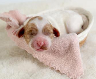 Our puppies include cream, black and white, brown and white, red and white, and red. Colors will vary depending on the parent dogs.