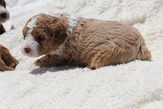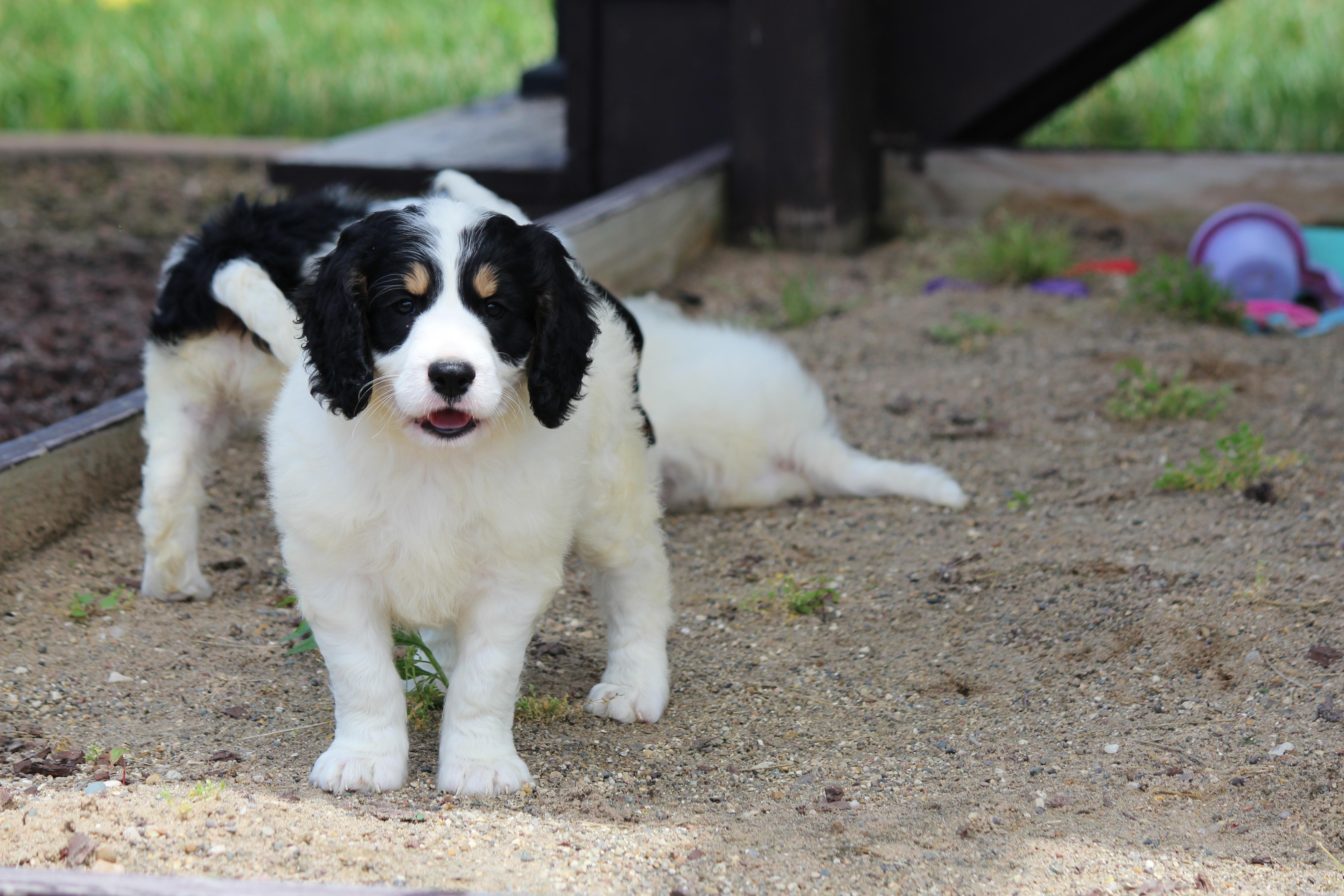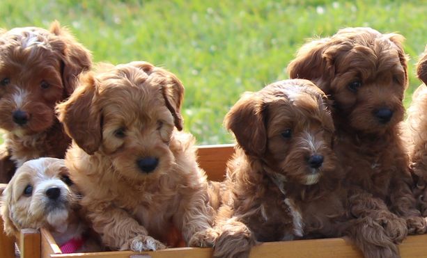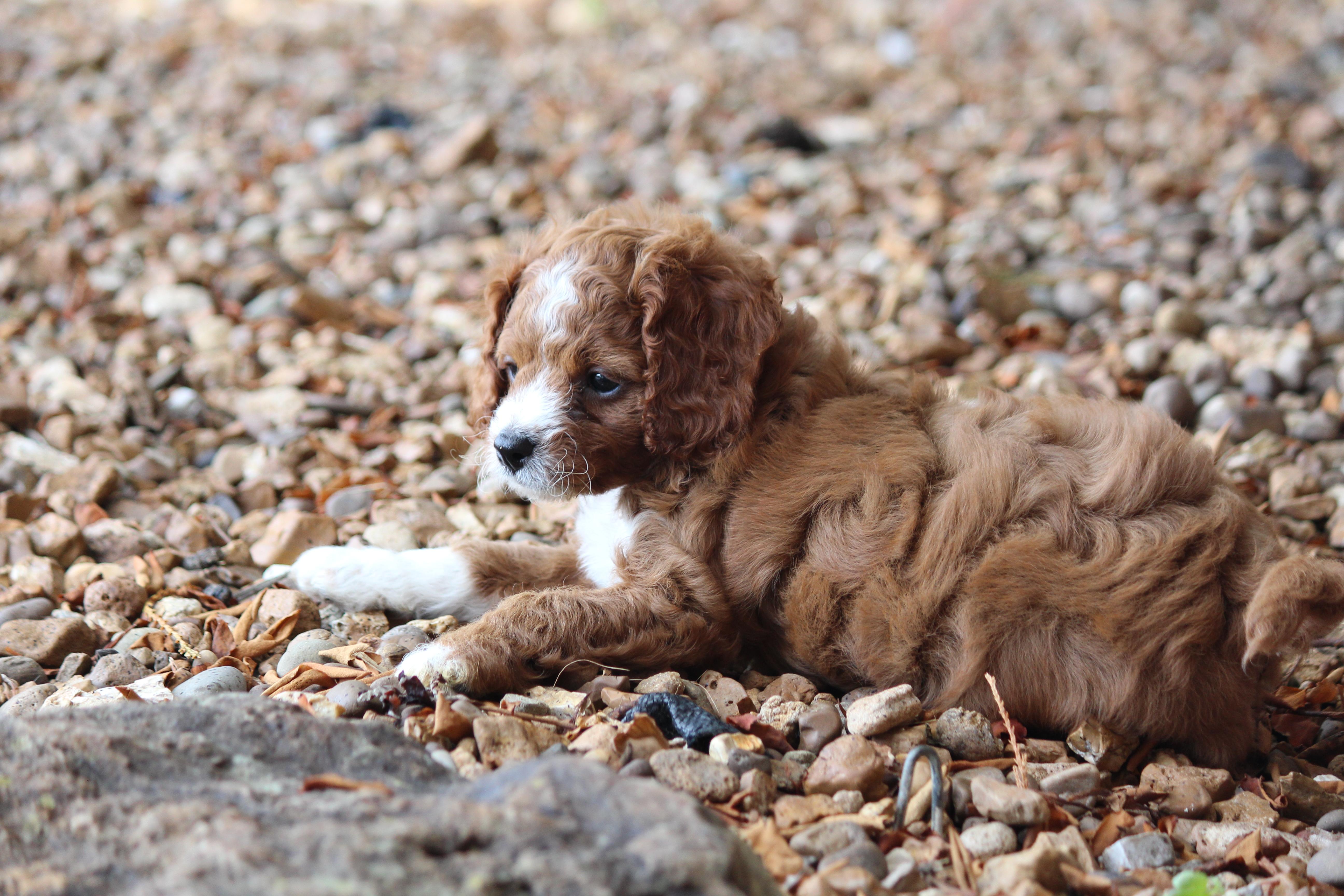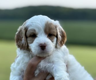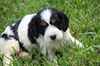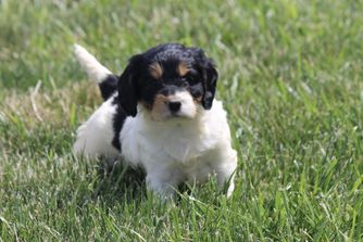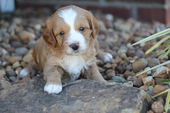 Our Cavapoo puppies include blenheim, red, and apricot. Poodle puppies include apricot and red. Springerdoodle puppies include black and white and black white and tan. Colors will vary depending on the parent dogs.