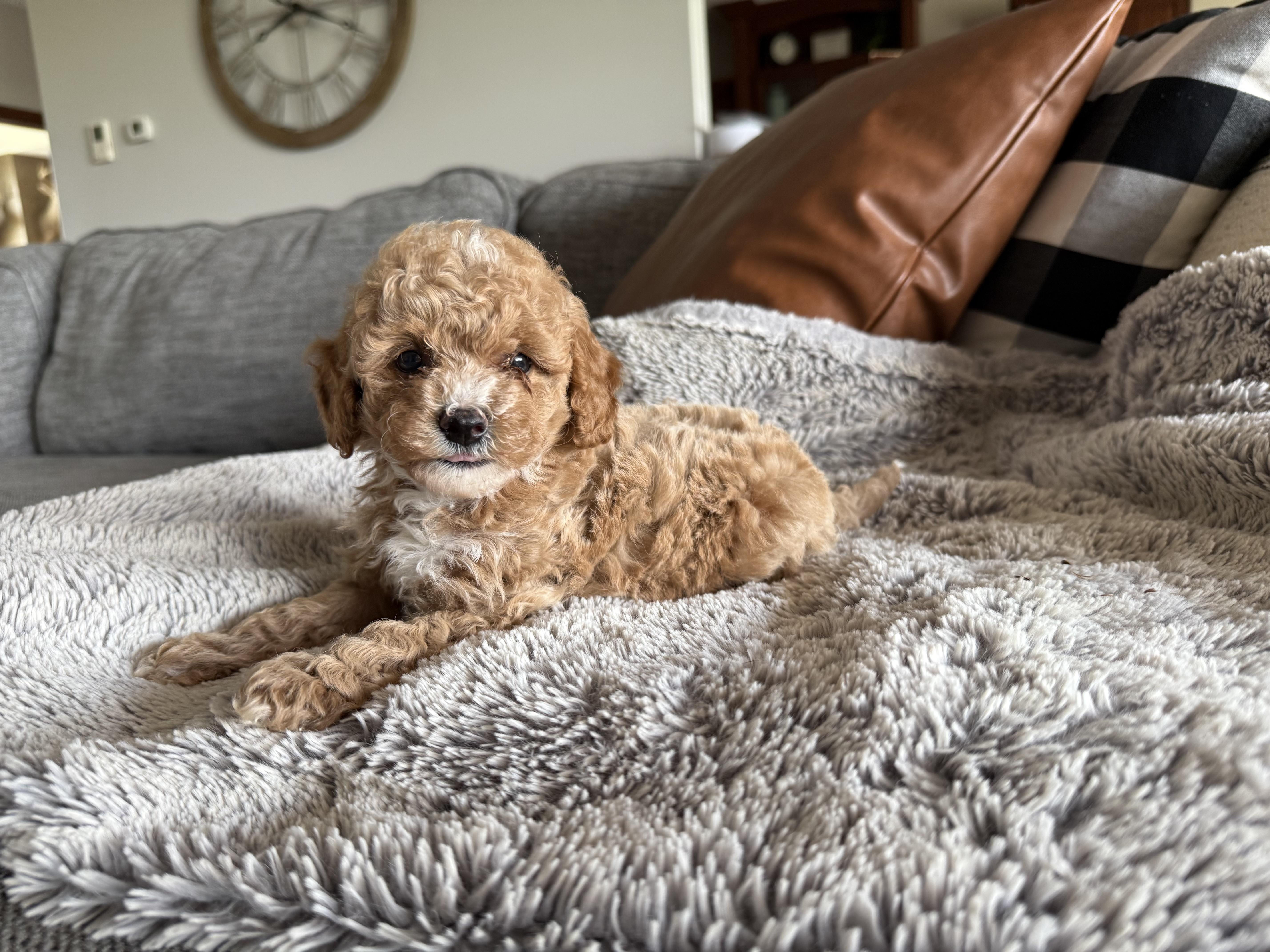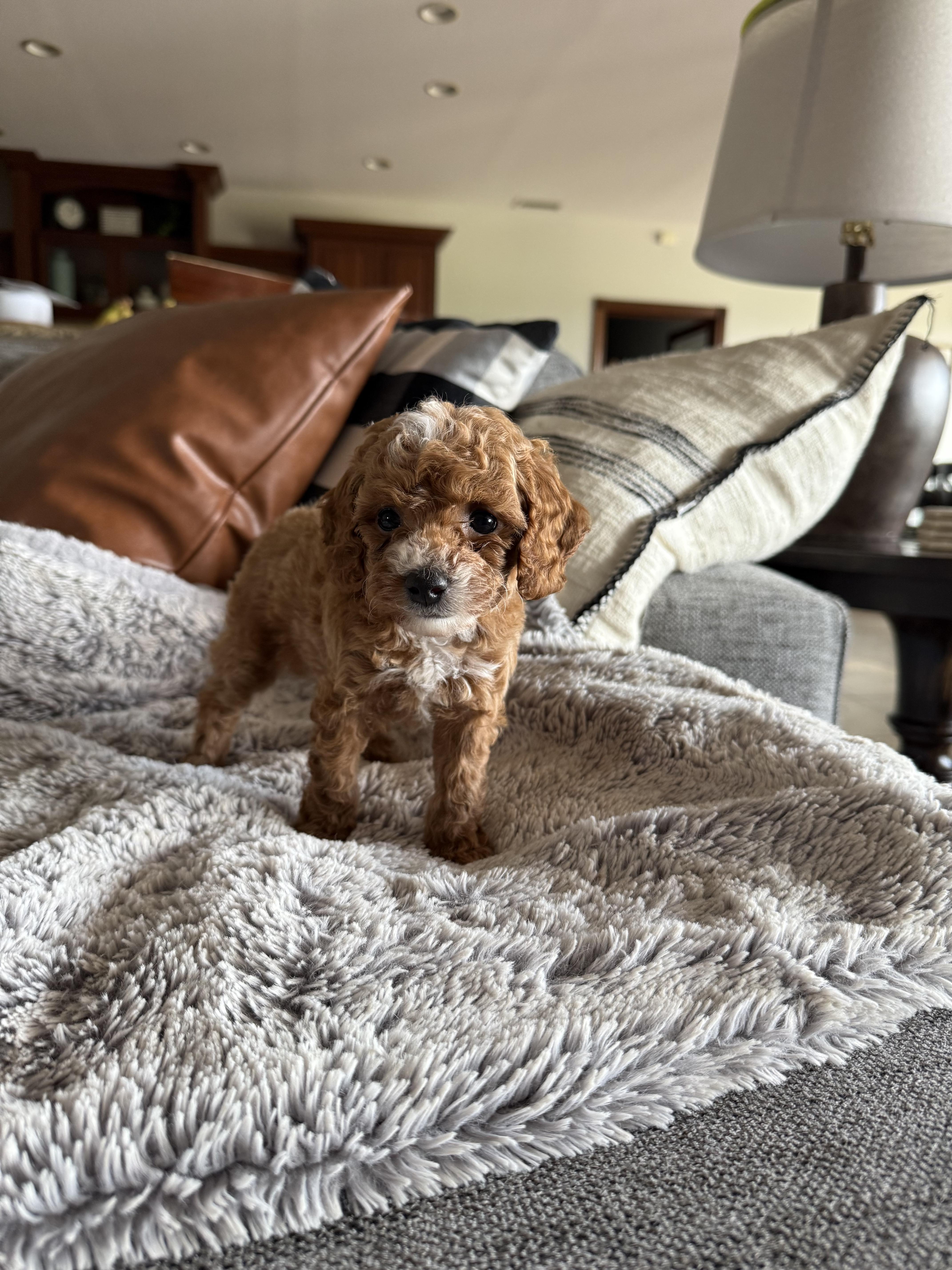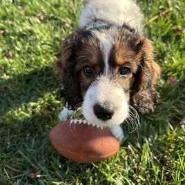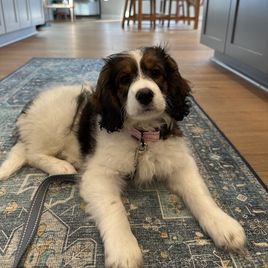 Libby was helpful and flexible with dates allowing us to pick up little Coco on a weekend that worked for our family . Coco has been doing wonderfully with potty training and is already gifted at fetch. We love this fluffy girl.