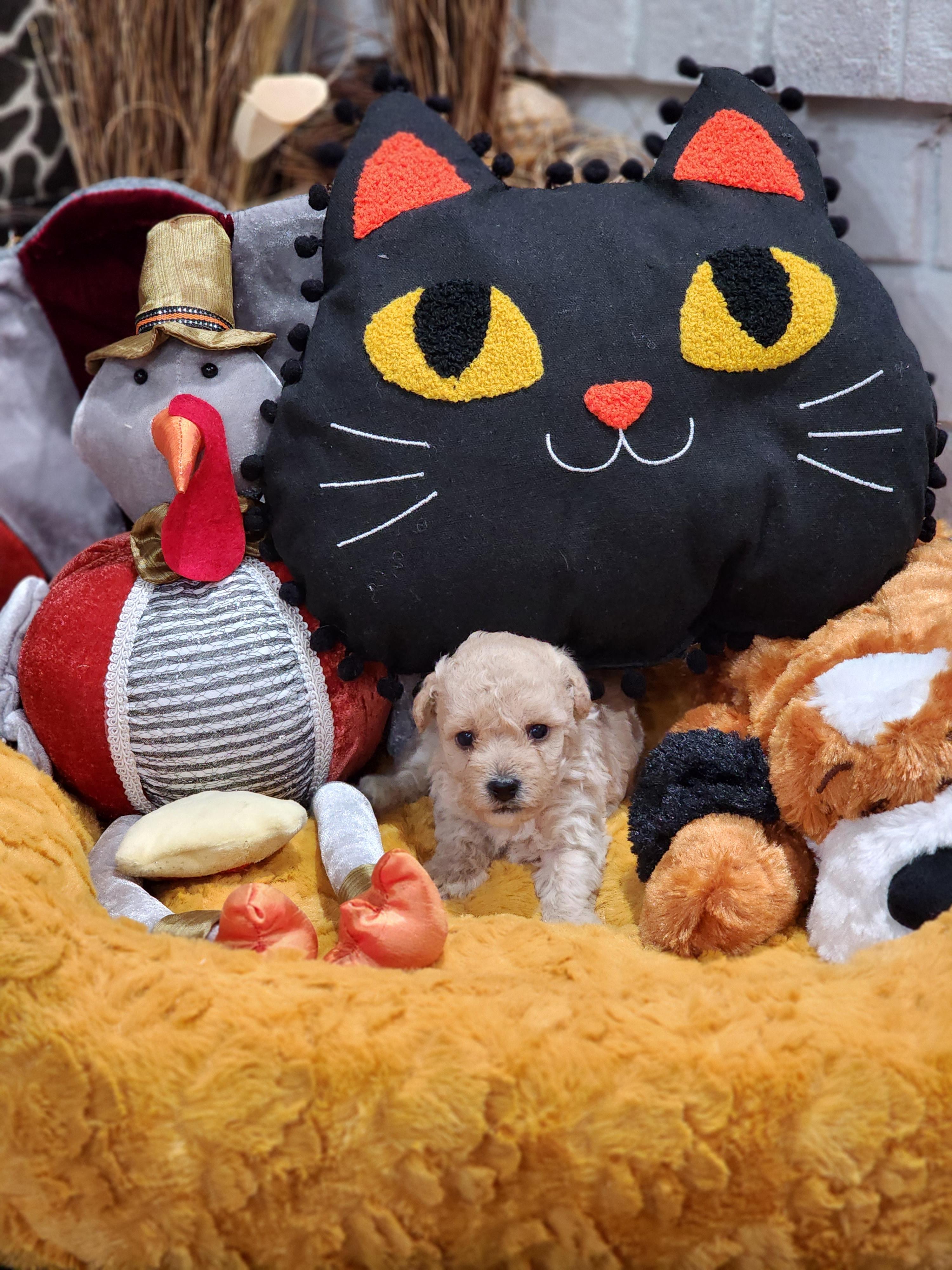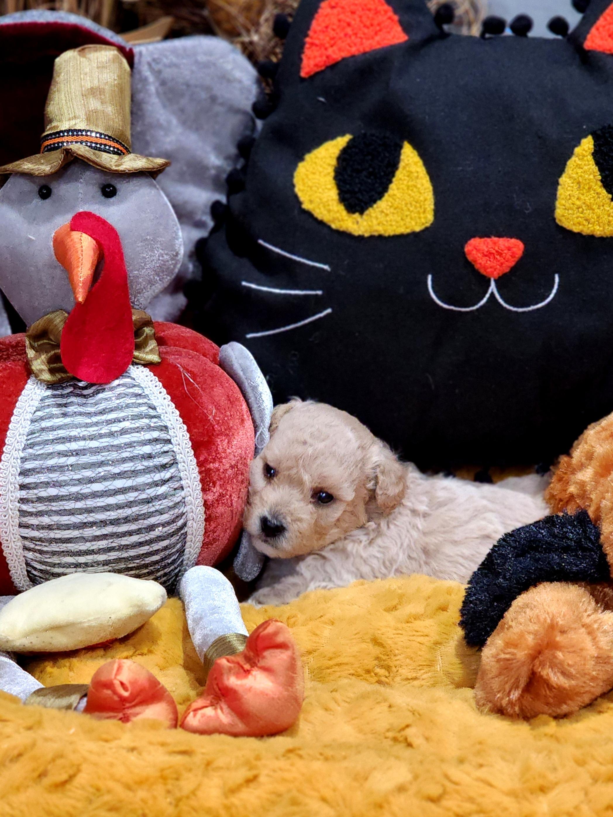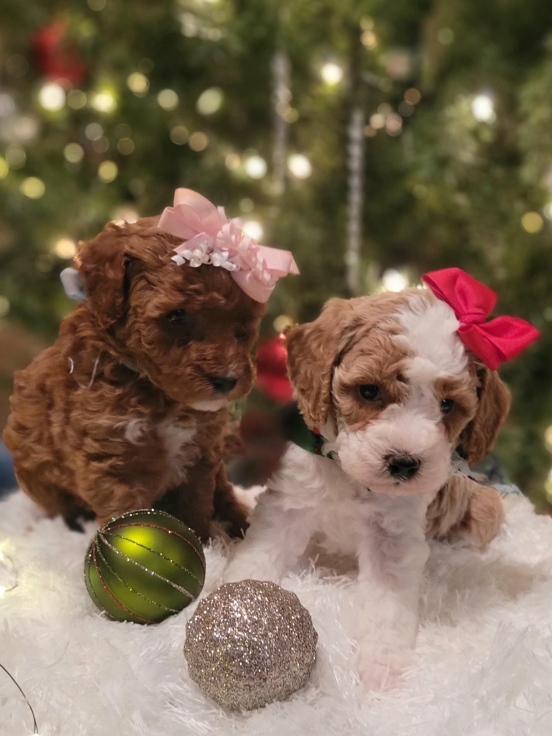 Cavapoo puppies include toy and miniature sizes. Goldendoodle puppies include miniature and standard sizes. Poodle puppies are toy size. Shihpoo puppies are tiny size. Sizes will vary depending on the parent dogs.