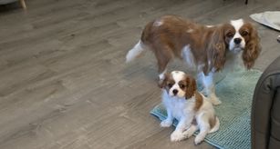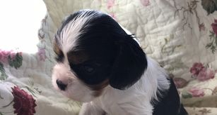Our puppies include blenheim and black and white. Colors will vary depending on the parent dogs.