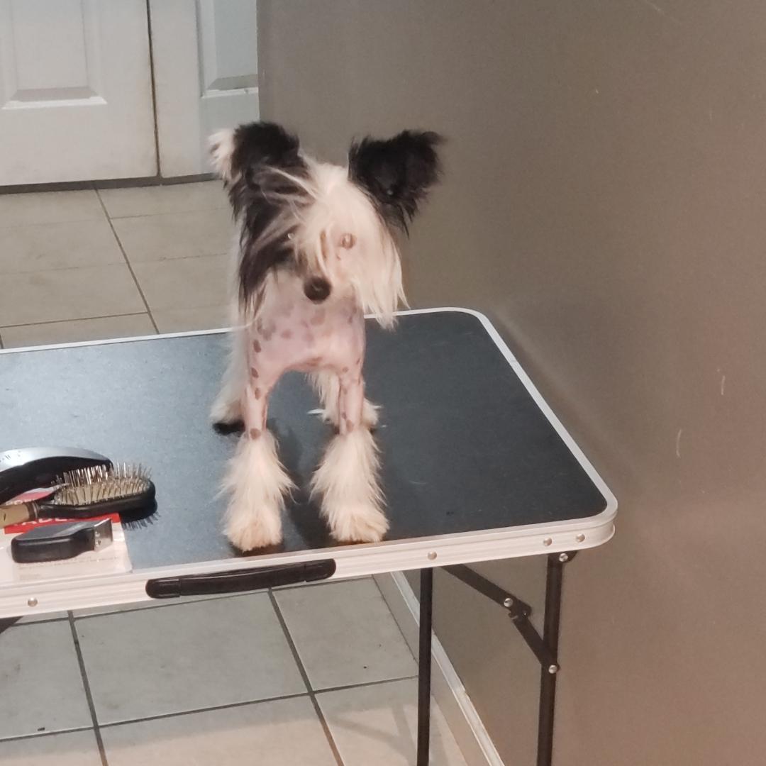 Cookie is a beautiful very hairy hairless Chinese Crested with a great personality/temperament. She loves people, loves attention, loves to show.