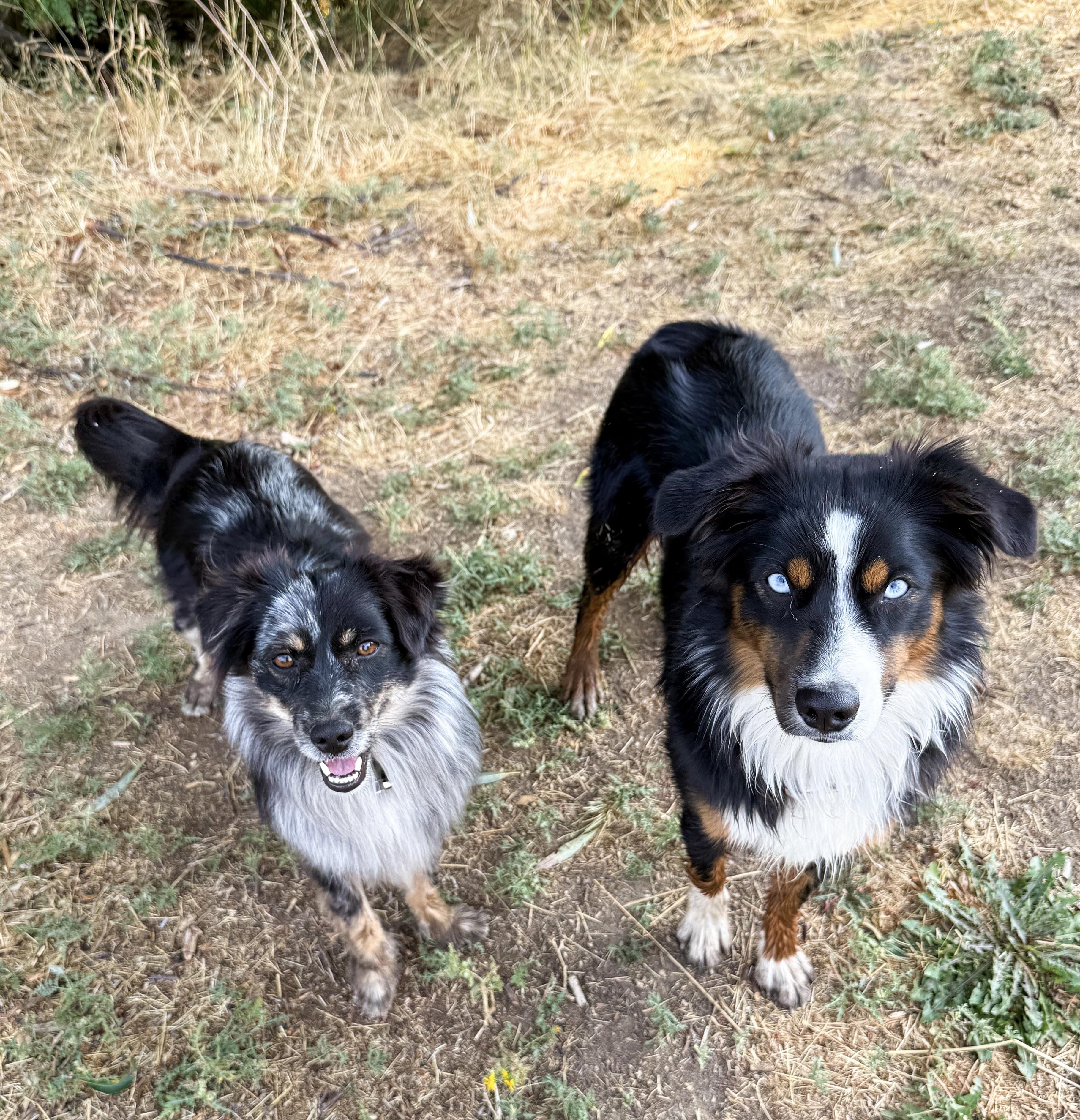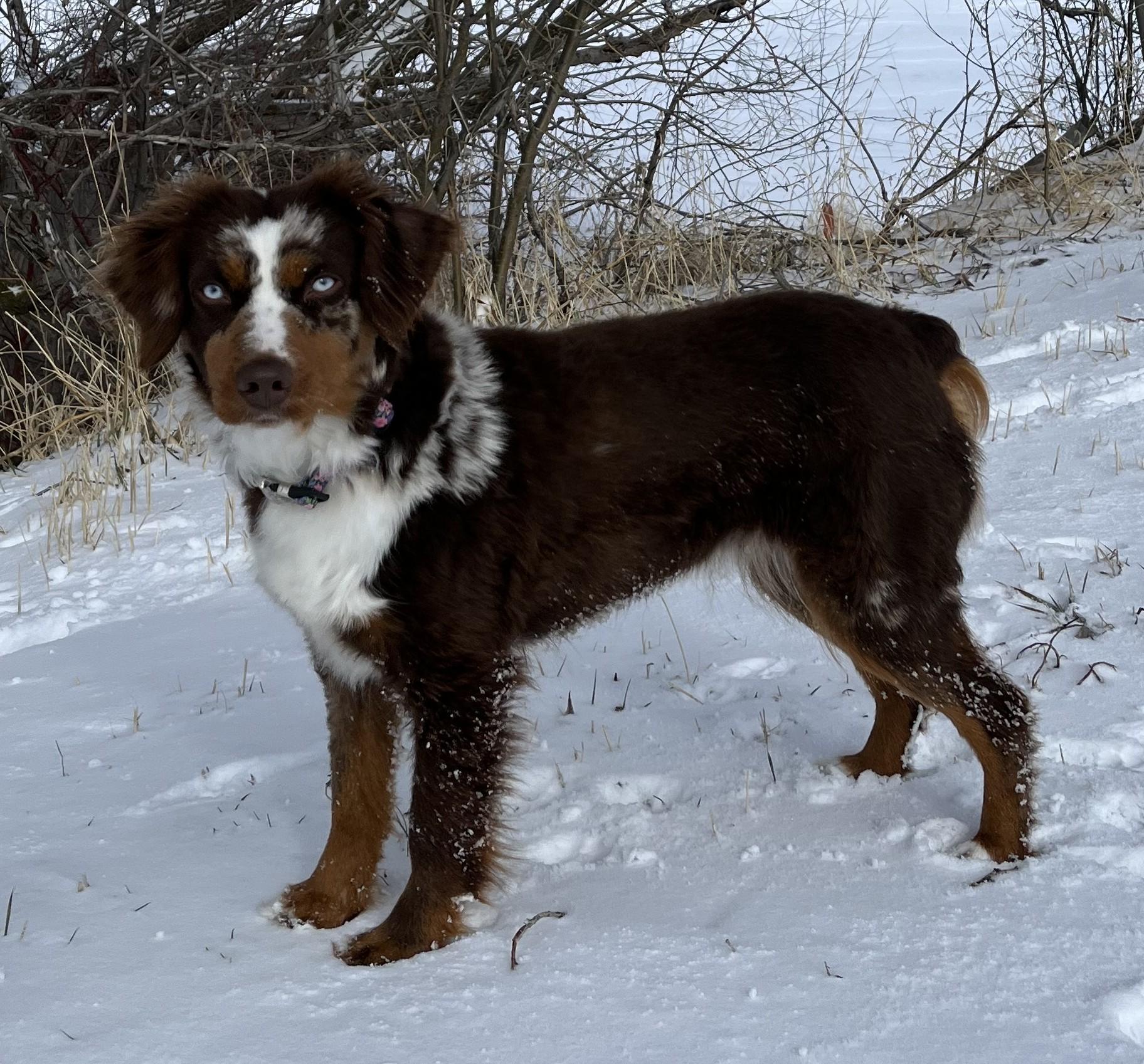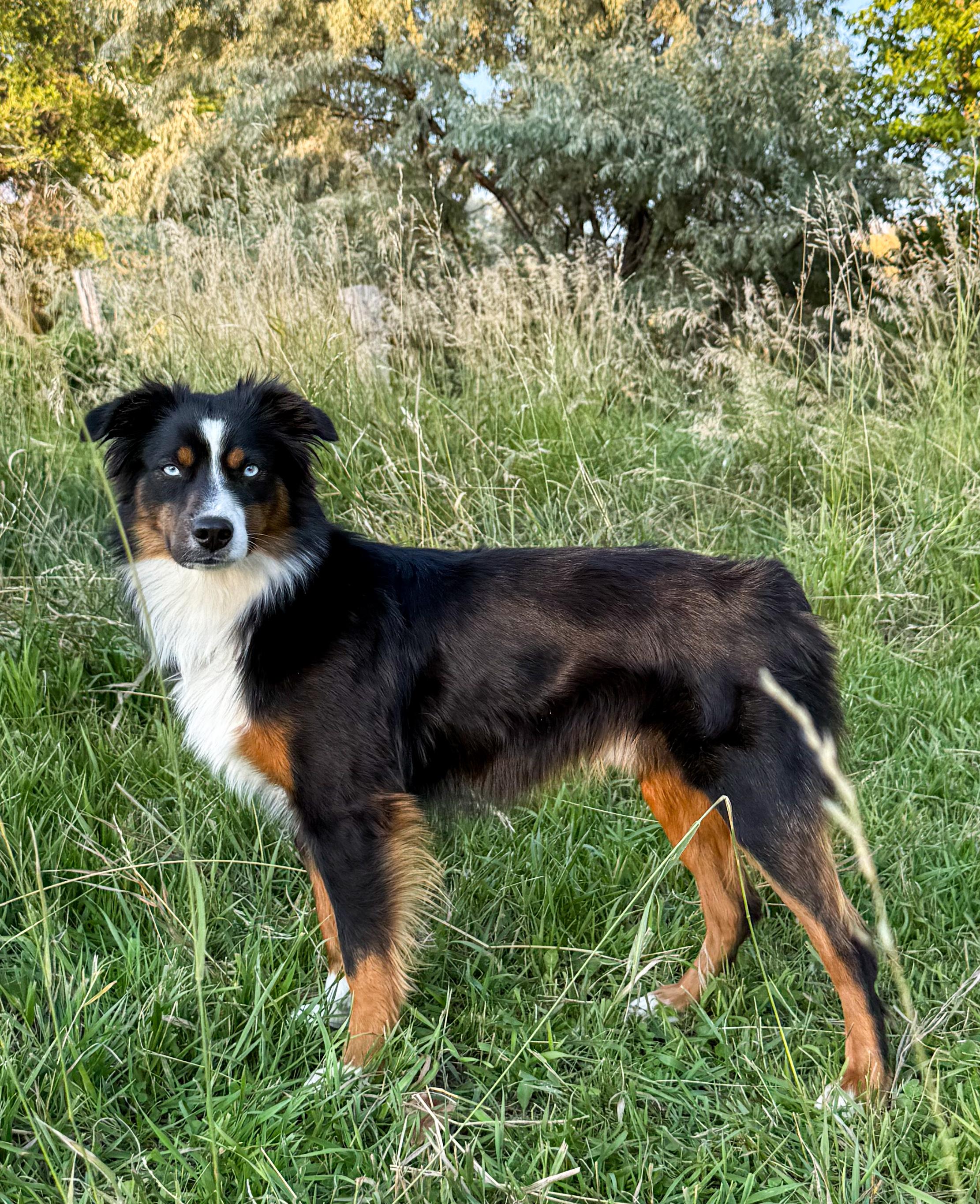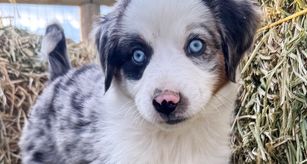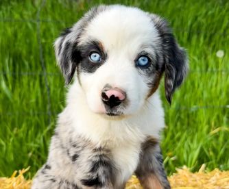 Our puppies include black tri, red tri-color, red merle, and blue merle. Colors will vary depending on the parent dogs.