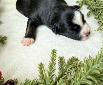 “Puppies go home microchipped, vet checked, UTD on wormer and shots, pedigreed, health tested parents, ENS/ESI exposure training, farm animal and children socialization, potty trained, and loved. Deposit of $100 to reserve pic-order on selection day at five weeks. $500 to hold puppy, full price must be paid by 6 weeks. We do our best to work with you to match best temperament for your needs.”