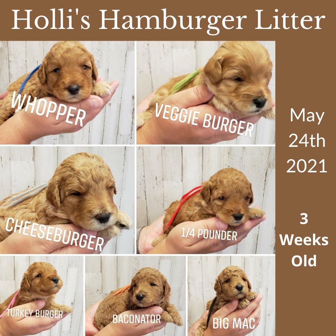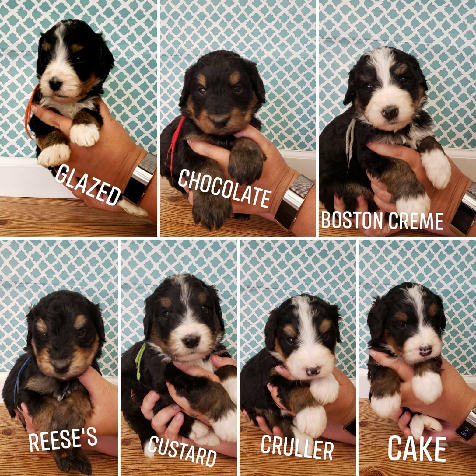 Our Bernedoodle puppies are standard size. Goldendoodle puppies include miniature, medium, and standard sizes. Sizes will vary depending on the parent dogs.