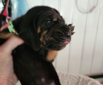 Beautiful full coated black and tan. Has been featured on a national Bloodhound calendar in 2923 and again in 2024.