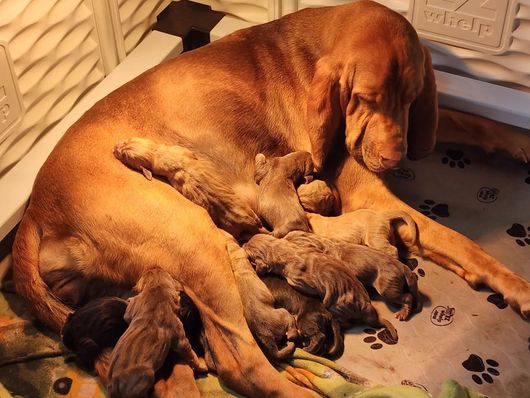 Mercy began delivering pups today @ 3pm. It's now almost midnight and I think she's done. 4 black and tans and 2 Reds. 2 B&T females and 1 red female.