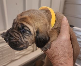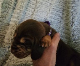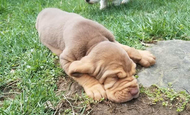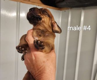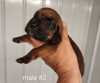Haven is our newest female. She is a full coated liver and tan. She came to us from a Bloodhound breeder out of North Carolina. She will be the future dam in our breeding program. She is an active , crazy pup now. She loves toys, playing in water, and other dogs.
