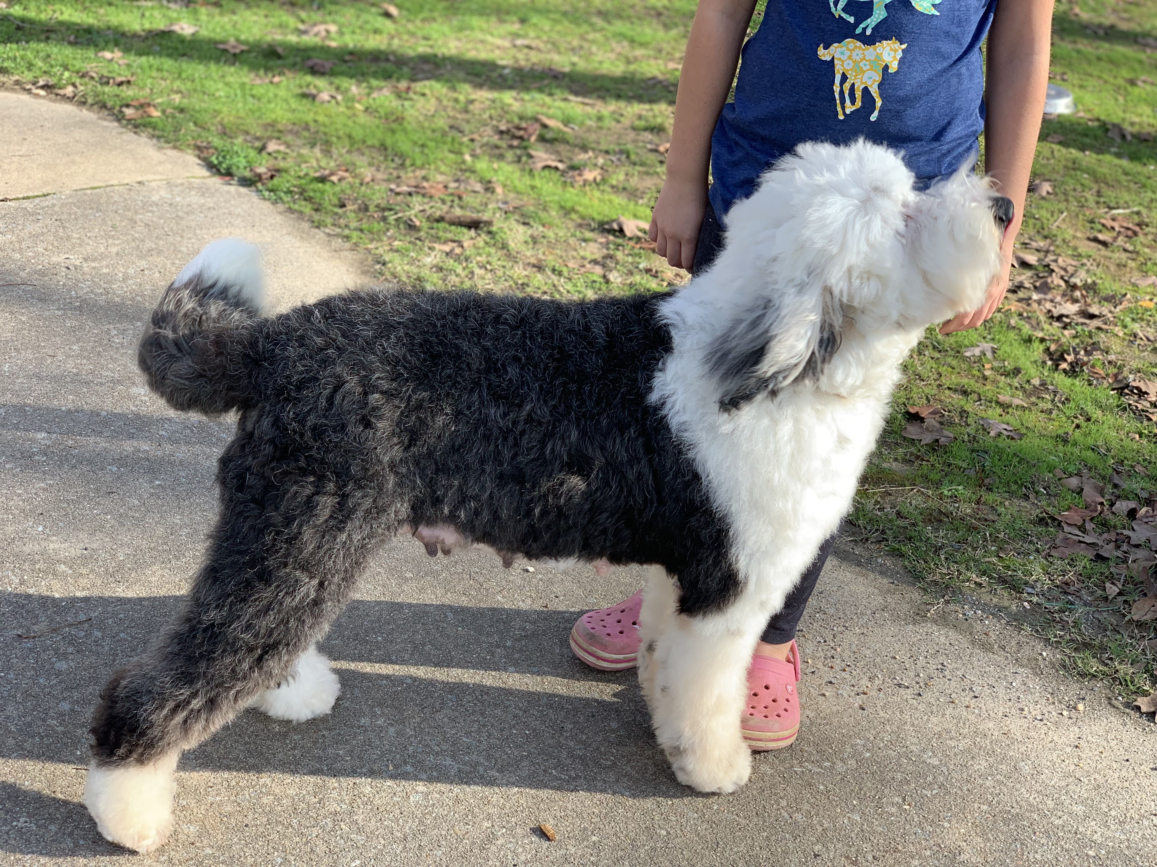 Polkabot is a female Sheepadoodle. Carefully selected as a great representative of her breed, Summer decided to make her part of their program. Summer has passed Good Dog’s screening process, which involved a review of their breeding practices, environment, and the mental and physical health of their dogs.