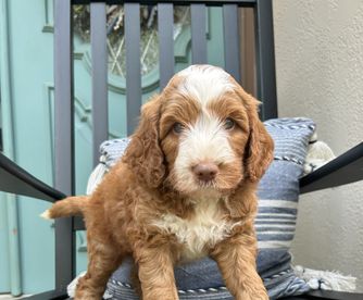 Biscuit is a male Goldendoodle. Carefully selected as a great representative of his breed, Summer decided to make him part of their program. Summer has passed Good Dog’s screening process, which involved a review of their breeding practices, environment, and the mental and physical health of their dogs.