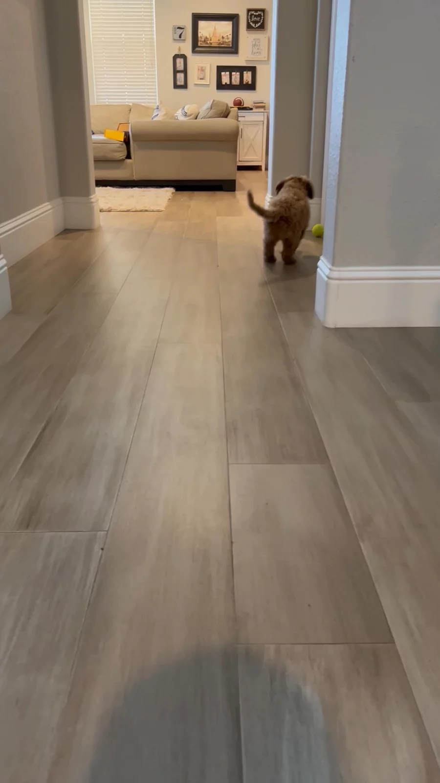 Curry being brave! He is a fun little pup who likes to play with a ball. Who wants to throw it to him?