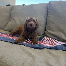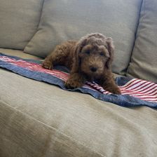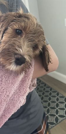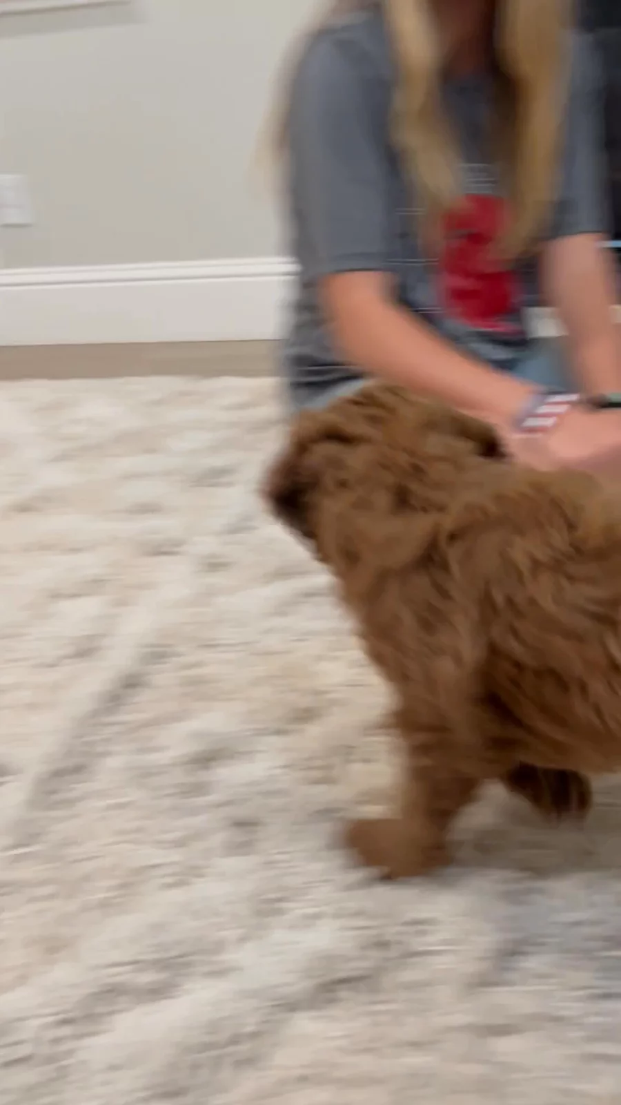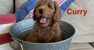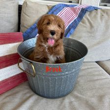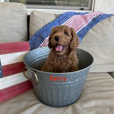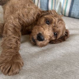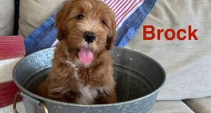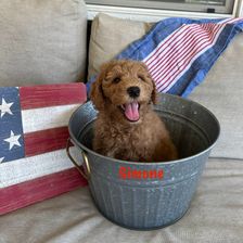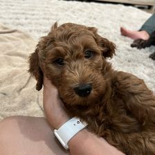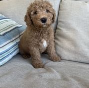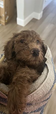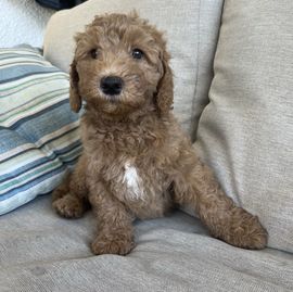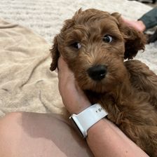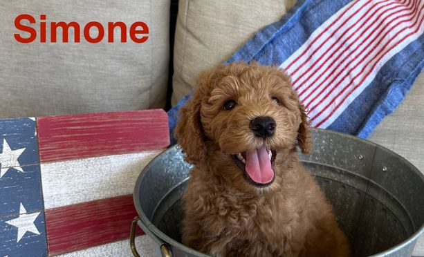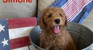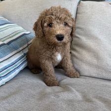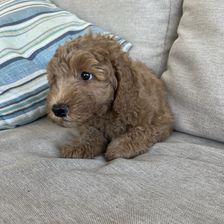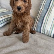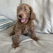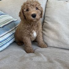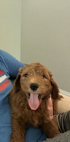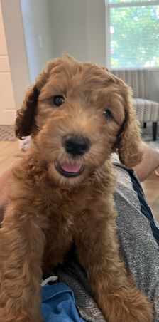 Summer is our sweet mother goldendoodle. Very loyal and friendly. Grew up with lots of kids in the house and is very good with kids.