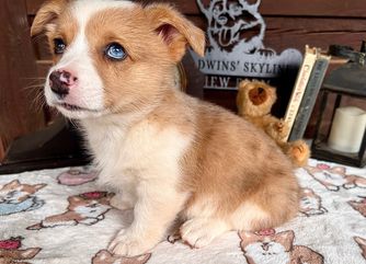 Our American Corgi puppies include black and white, black and tan, red and white, blue merle and white, and red merle and white. Pembroke Welsh Corgi puppies include white and fawn, fawn, red, sable, white and black, white and red, black and tan, and blue. Colors will vary depending on the parent dogs.