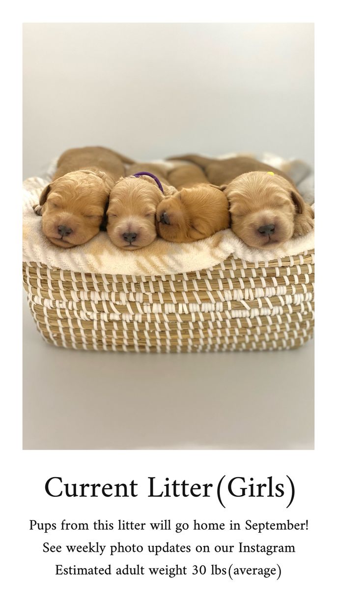 Our puppies include cream and apricot. Colors will vary depending on the parent dogs.