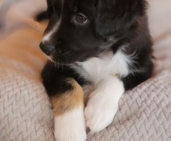 Our puppies include black and blue merle. Colors will vary depending on the parent dogs.